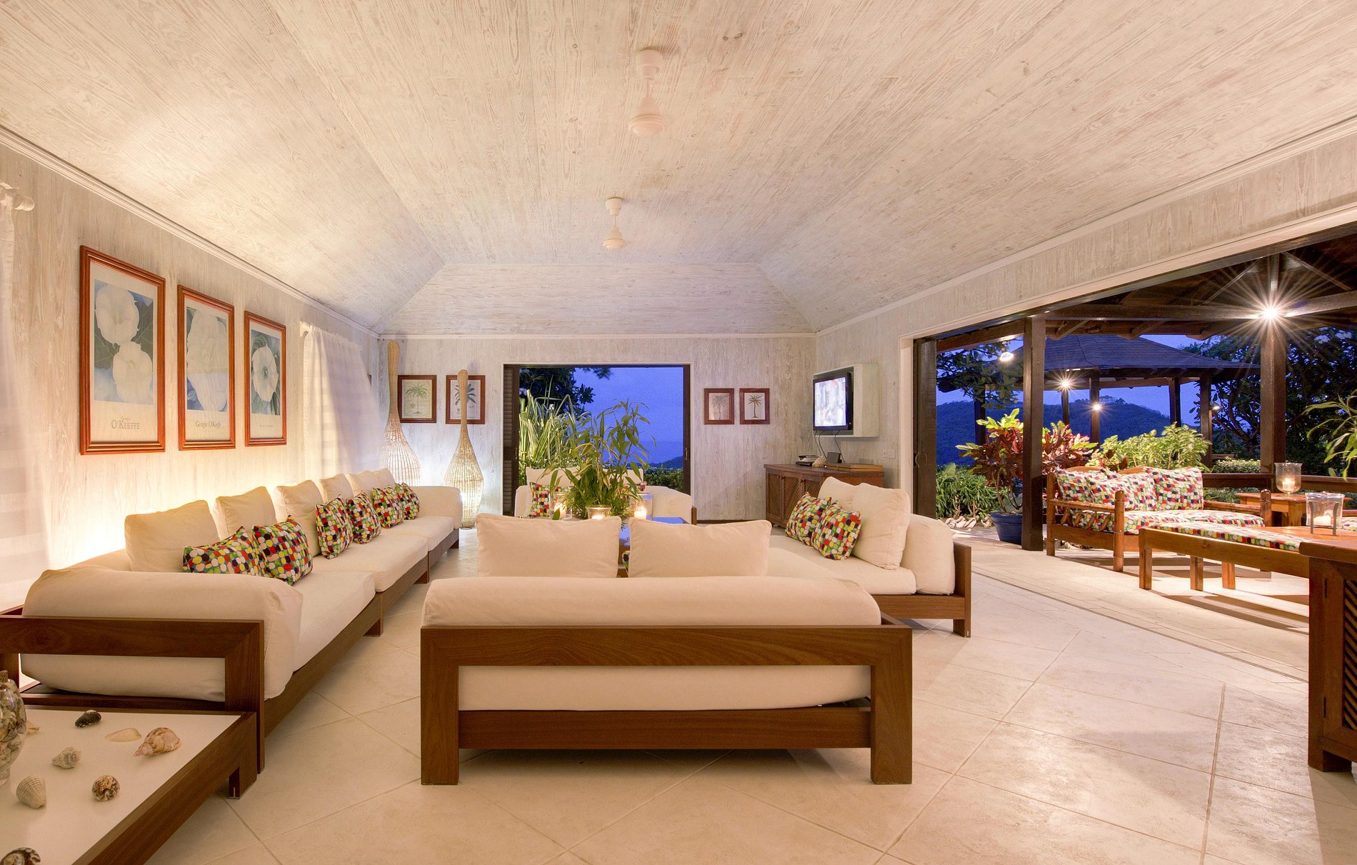 Projetado por Hasselqvist, esta villa de plano aberto tem vistas espectaculares sobre Pasture Bay e Macaroni Bay, na costa sudeste de Mustique.