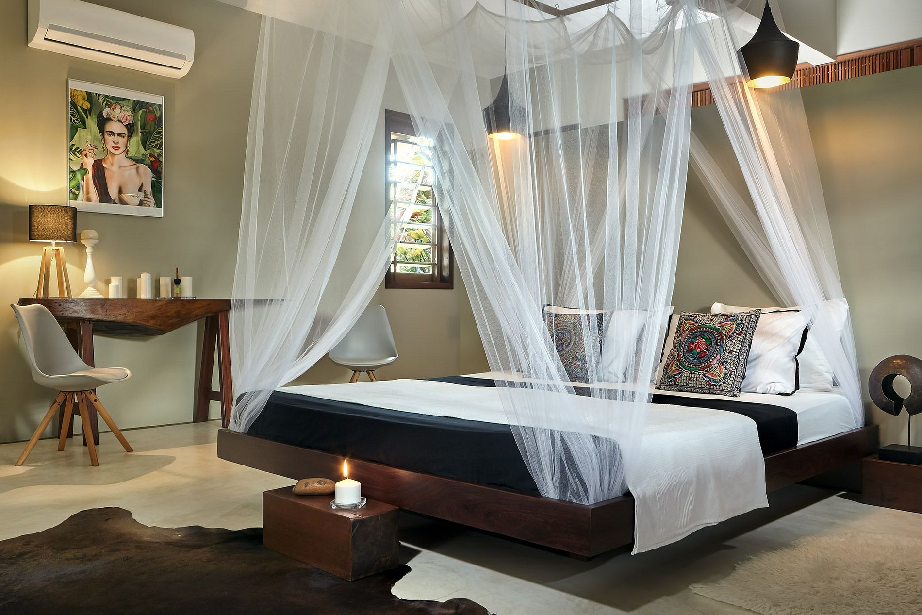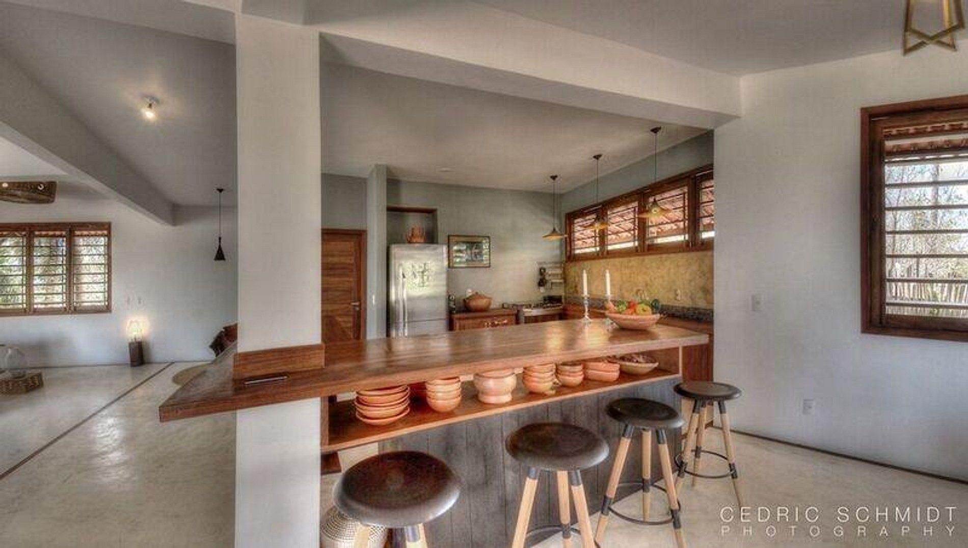 A casa oferece diversas áreas de estar e pátios onde os hóspedes podem relaxar e desfrutar do paraíso.