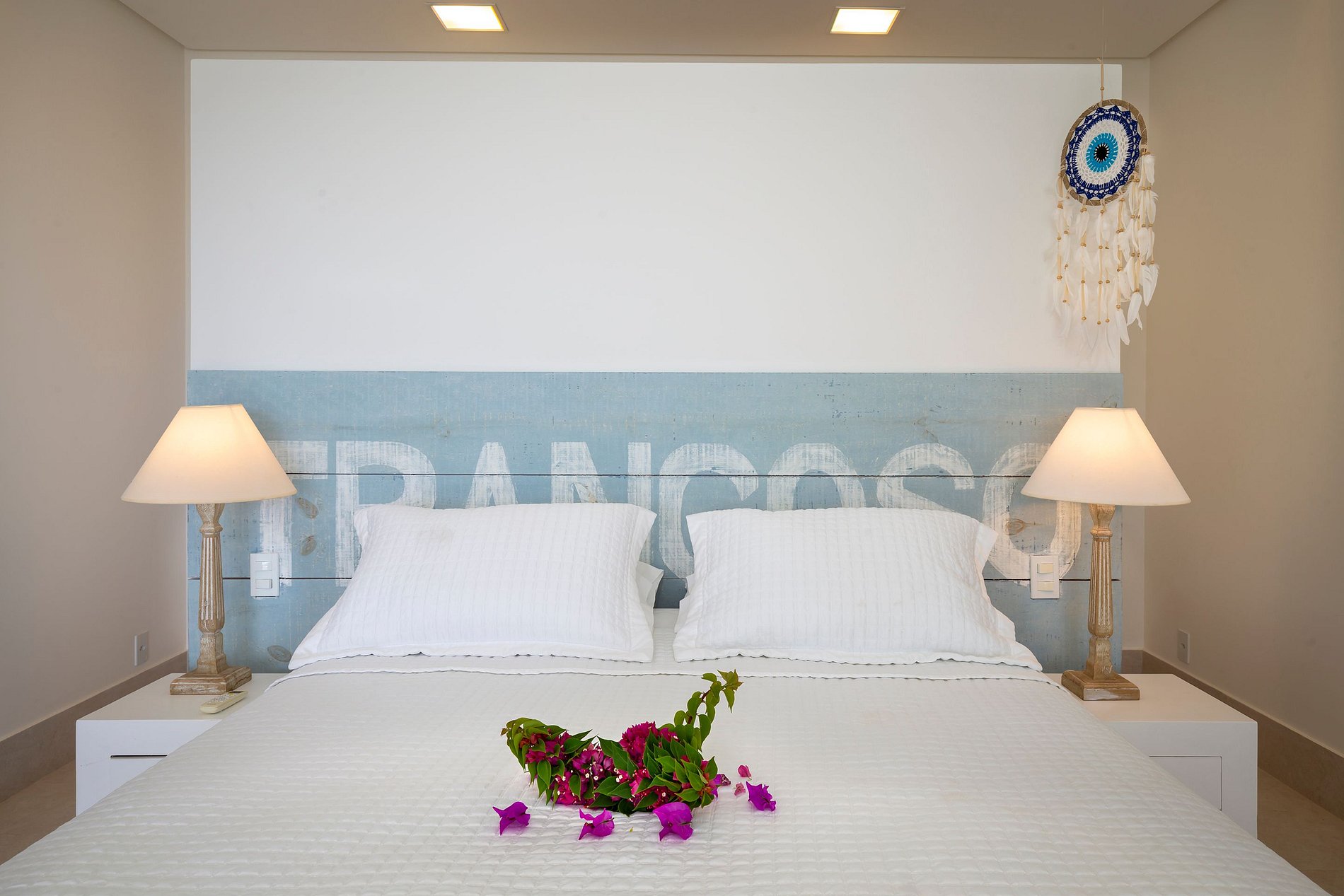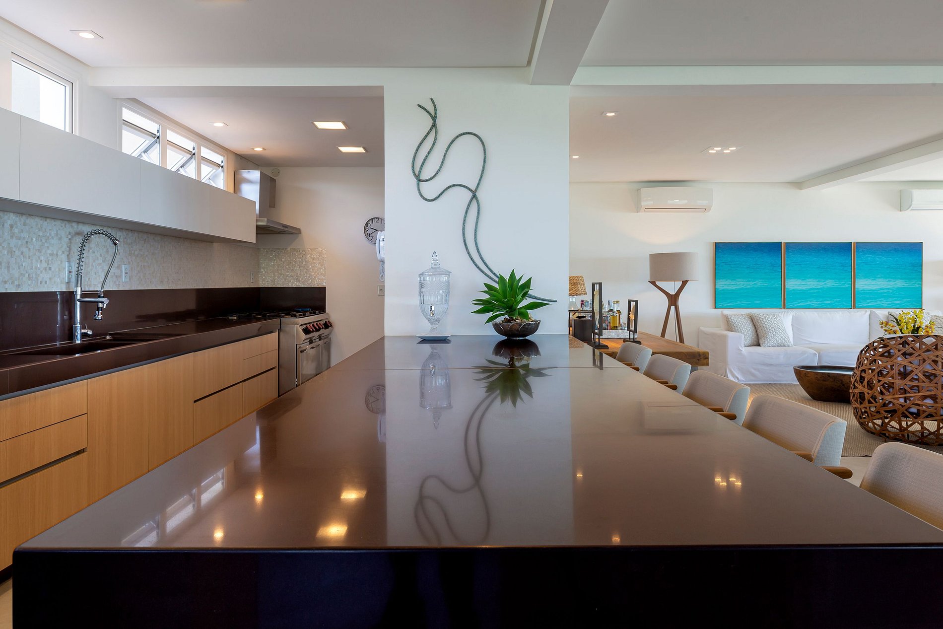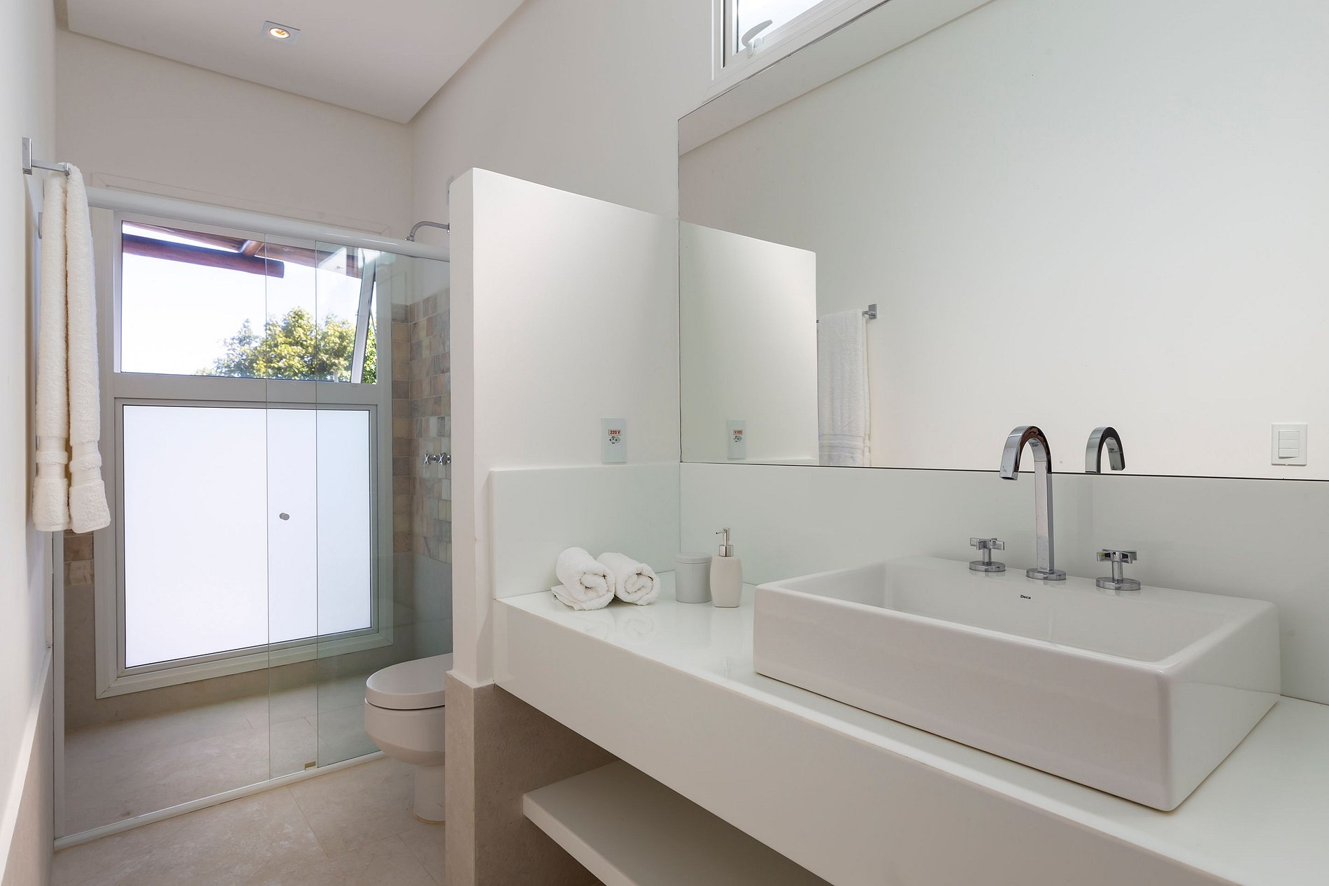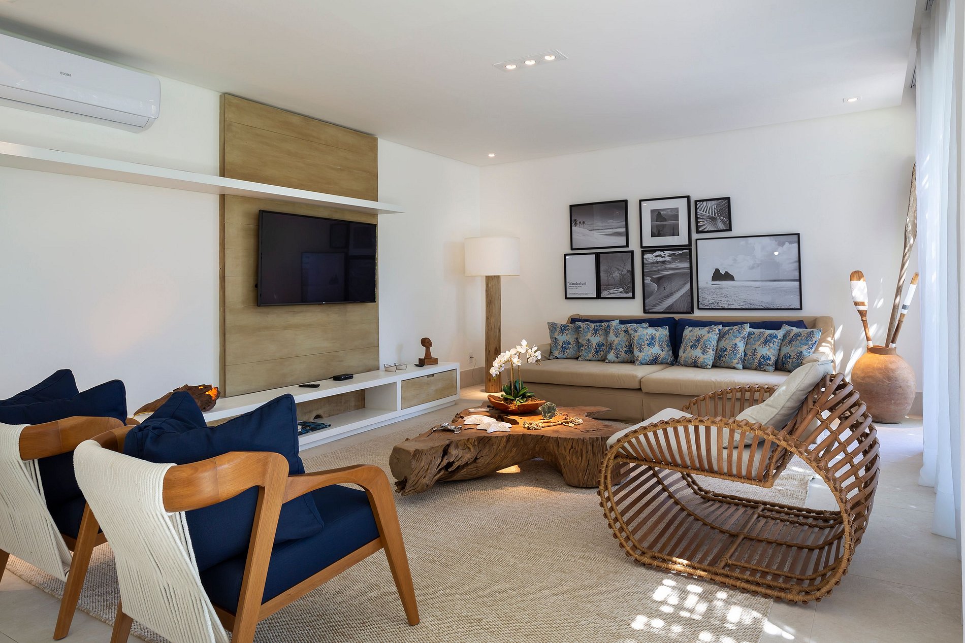 Vila spectaculaire et exclusive de 1 100 m², elle dispose de 2 suites master avec lit king size, dressing et minibar, vue sur la mer et les falaises, 3 suites avec lit king, minibar et dressing avec vue sur la mer, et 2 suites avec vue privilégiée sur la forêt native, avec terrasse intégrée et vue sur la mer. Elle est également pourvue d’un espace gastronomique complet avec barbecue, four à pizza et grande table en bois massif pouvant accueillir jusqu’à 16 personnes, d’un sauna sec et d’une salle de massage. La cuisine est équipée d’une cave à vin de 96 bouteilles, d’une tireuse à bière, de congélateurs verticaux et horizontaux, d’une machine à glaçons et la cuisinière est spécialisée dans la cuisine bahianaise.