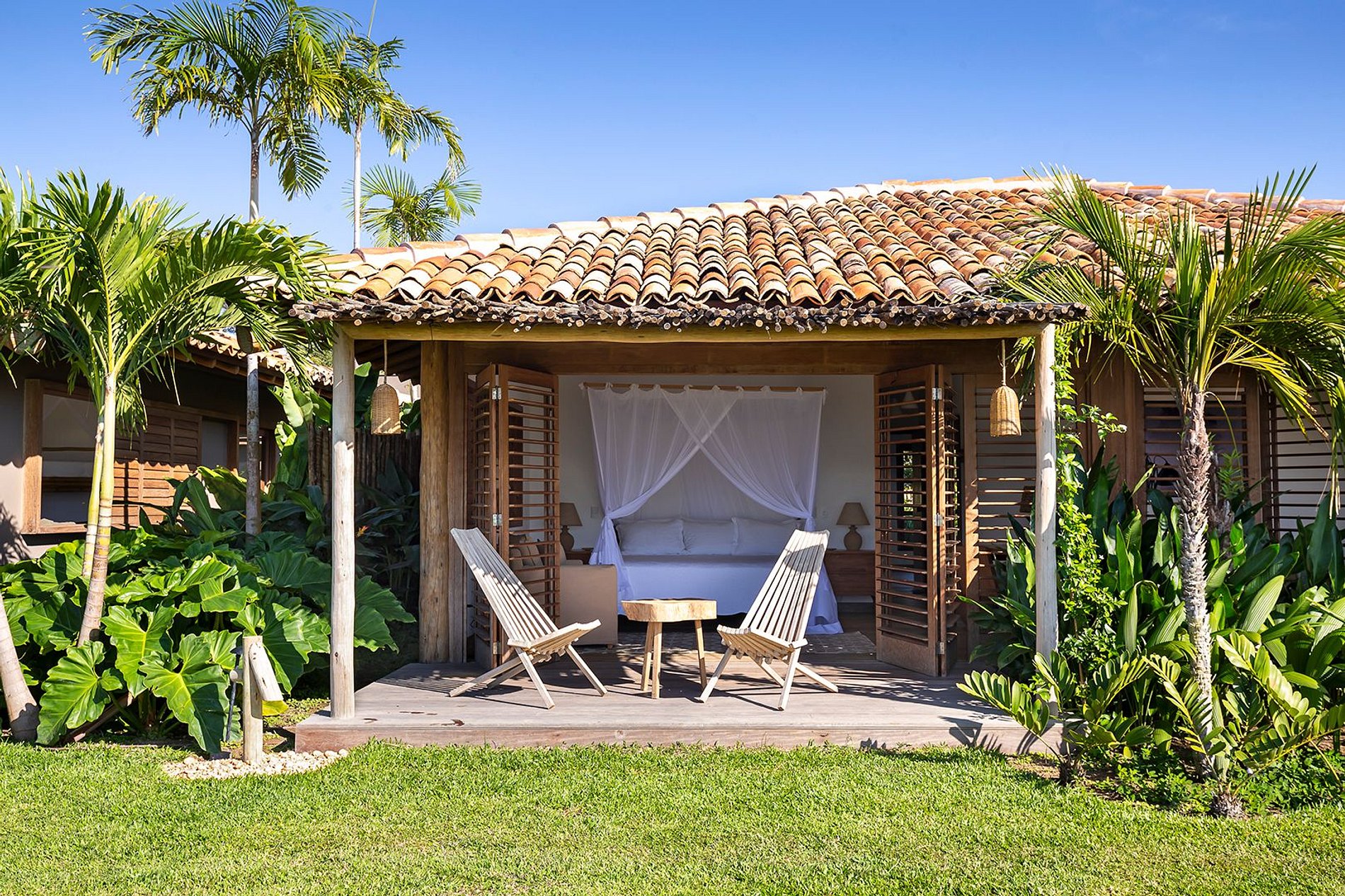 Localizada no Condomínio Altos de Trancoso, no litoral da Bahia. Construída com materiais orgânicos e madeira de demolição, tendo sua arquitetura projetada pela Vida de Vila.