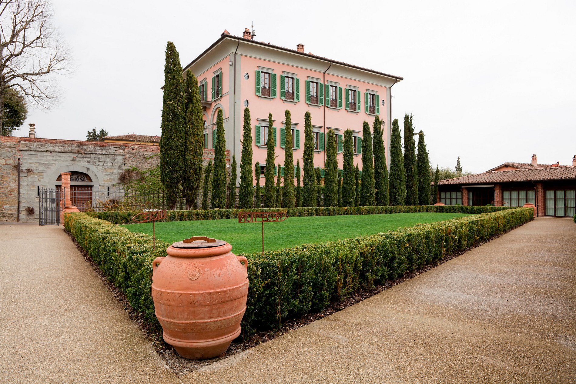 Situado no coração da Fazenda, a suntuosamente elegante Villa Dimora no Il Borro se enaltece sobre a pequena vila medieval. A villa histórica, construída em 1854 pela família Hohenlohe Waldenburg, passou para Duke Amedeo d'Aosta no início do século 20 e, finalmente, para Ferruccio Ferragamo em 1993. Foi cuidadosamente restaurado para sua antiga glória usando materiais autênticos e retenção as características arquitetônicas típicas das villas da Toscana do século XIX.
