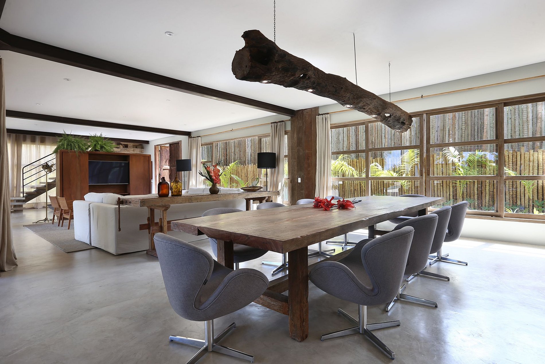 Sala de jantar com mesa para 12 pessoas, perfeita para refeições em família.