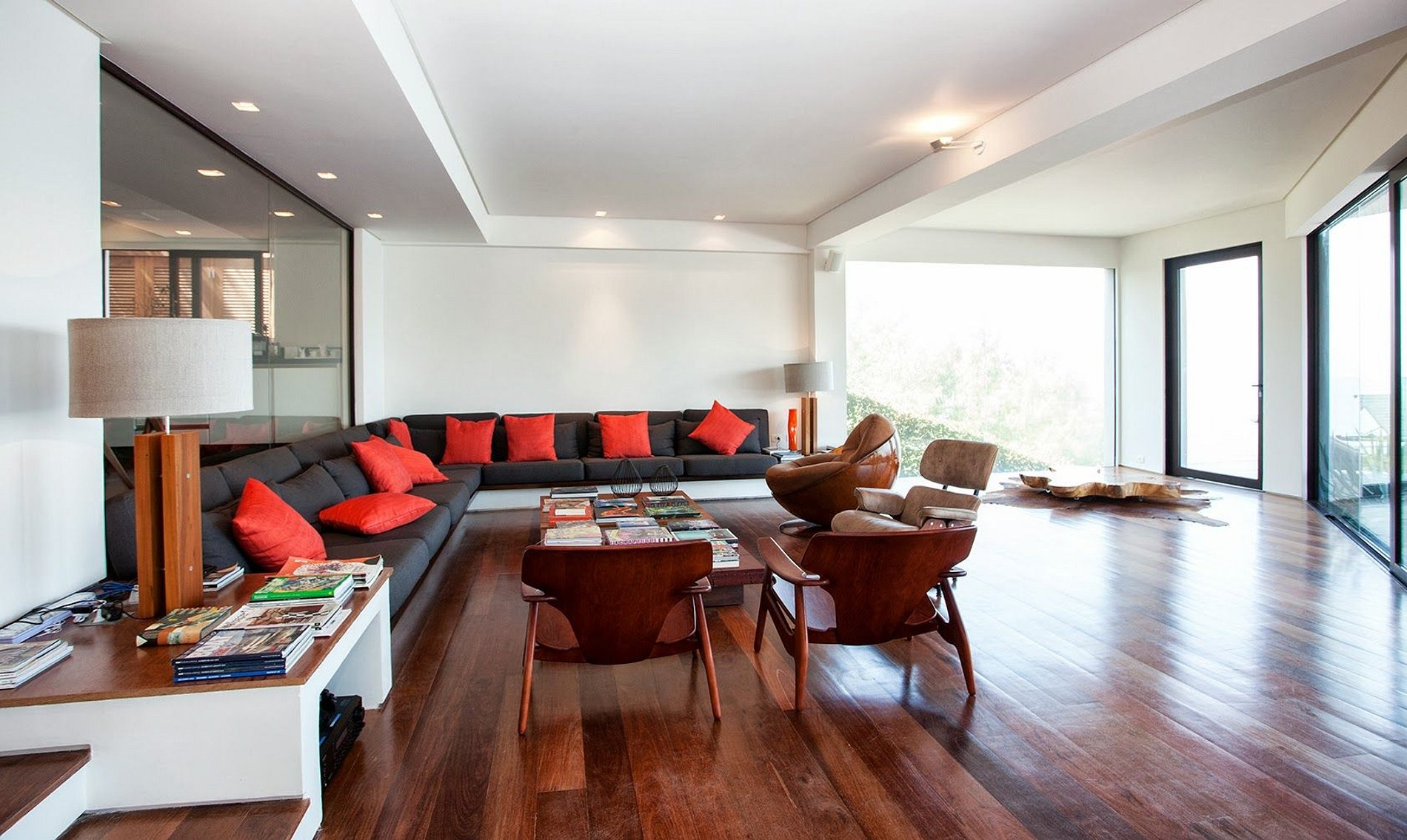 Les salons sont intégrés dans différents espaces, avec un coin lecture, une salle à manger et un espace détente pour admirer le coucher de soleil.