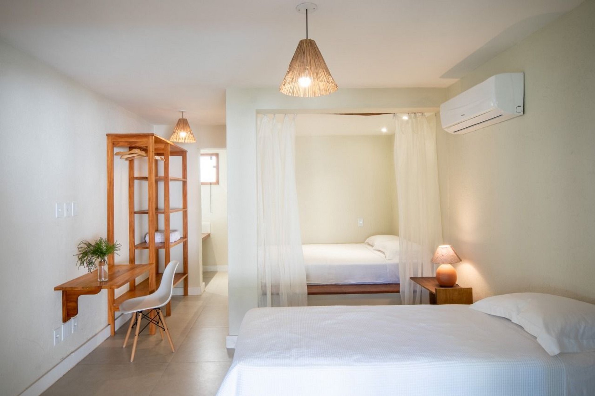 À l'étage supérieur : 2 suites et 1 chambre avec un lit queen size.