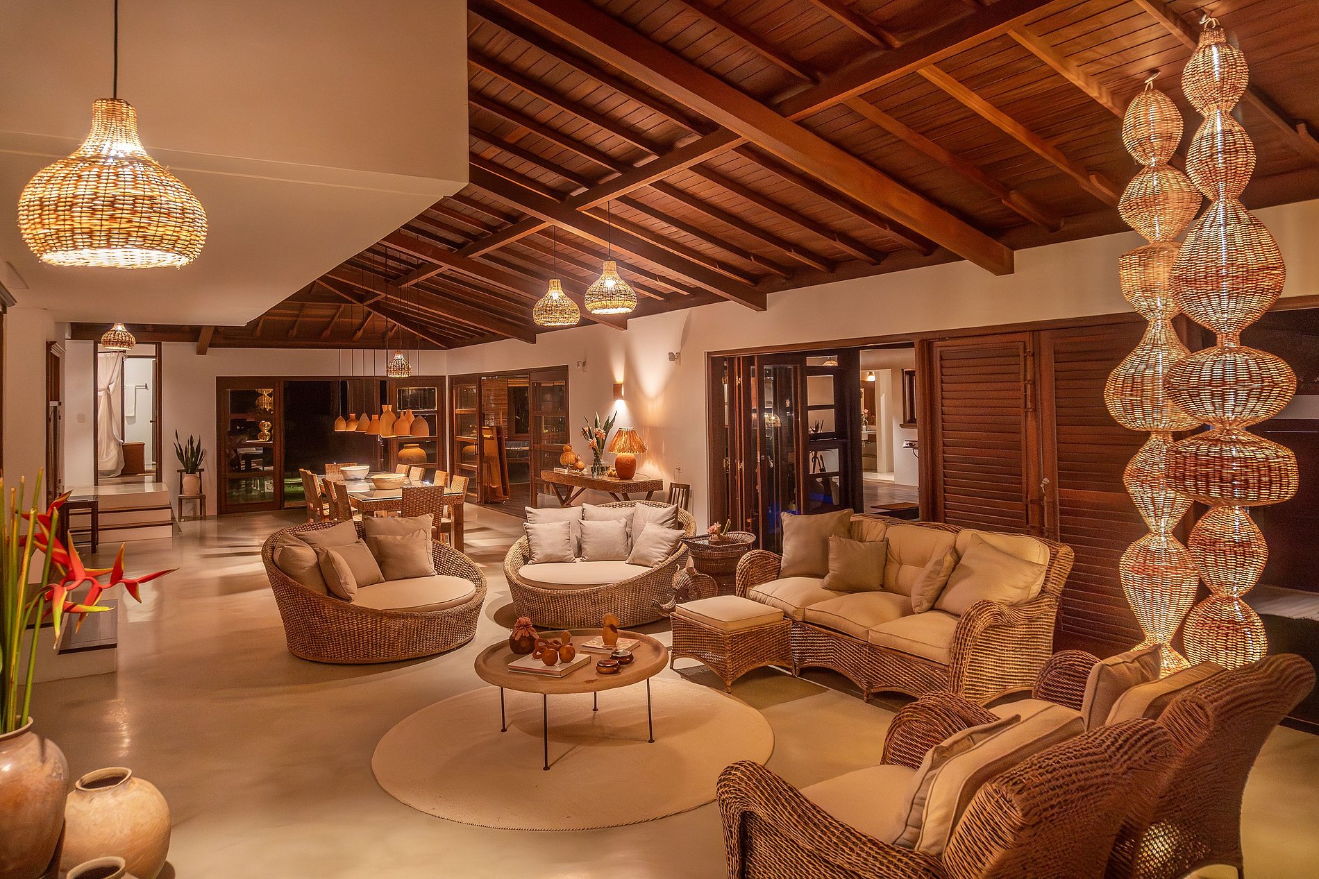 A decoração é inspirada na ilha de Bali, com um toque rústico e elegante típico do sul da Bahia. Madeiras de lei, barro e palha são elementos presentes em todo o espaço, proporcionando frescor e um clima tropical característico da região.