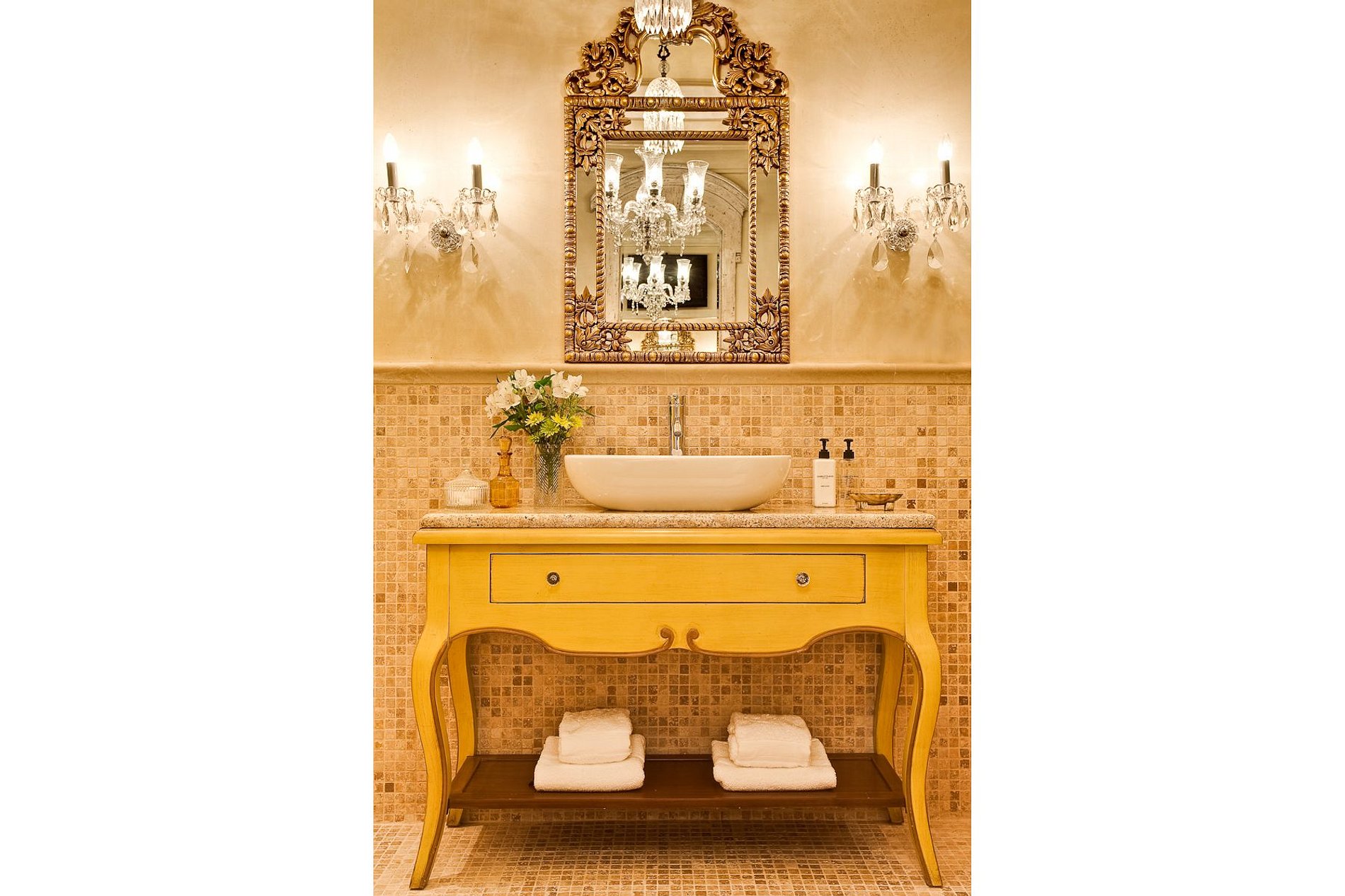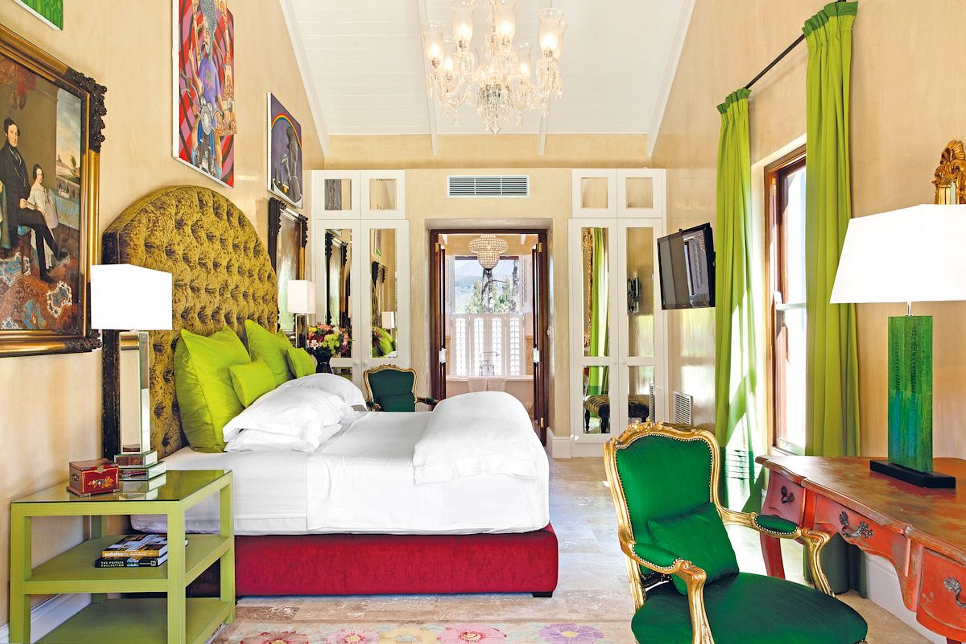 Brilhantes lustres indianos pendem do teto abobadado, obras de arte originais e grandes espelhos enfeitam as paredes, enquanto os móveis de Liz Biden são macios, coloridos e elegantes. Antiguidades elegantes e flores requintadas criam uma sensação de refinamento e sofisticação.