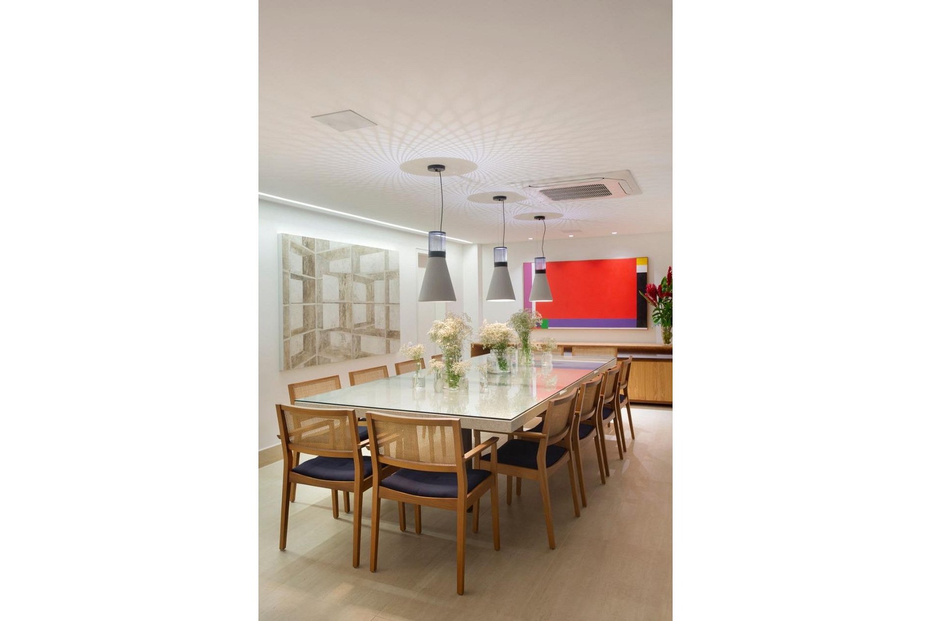 O projeto de Edgar Moura Brasil conta com salas espaçosas que integram uma arquitetura clean e contemporânea, trazendo muita privacidade e conforto.