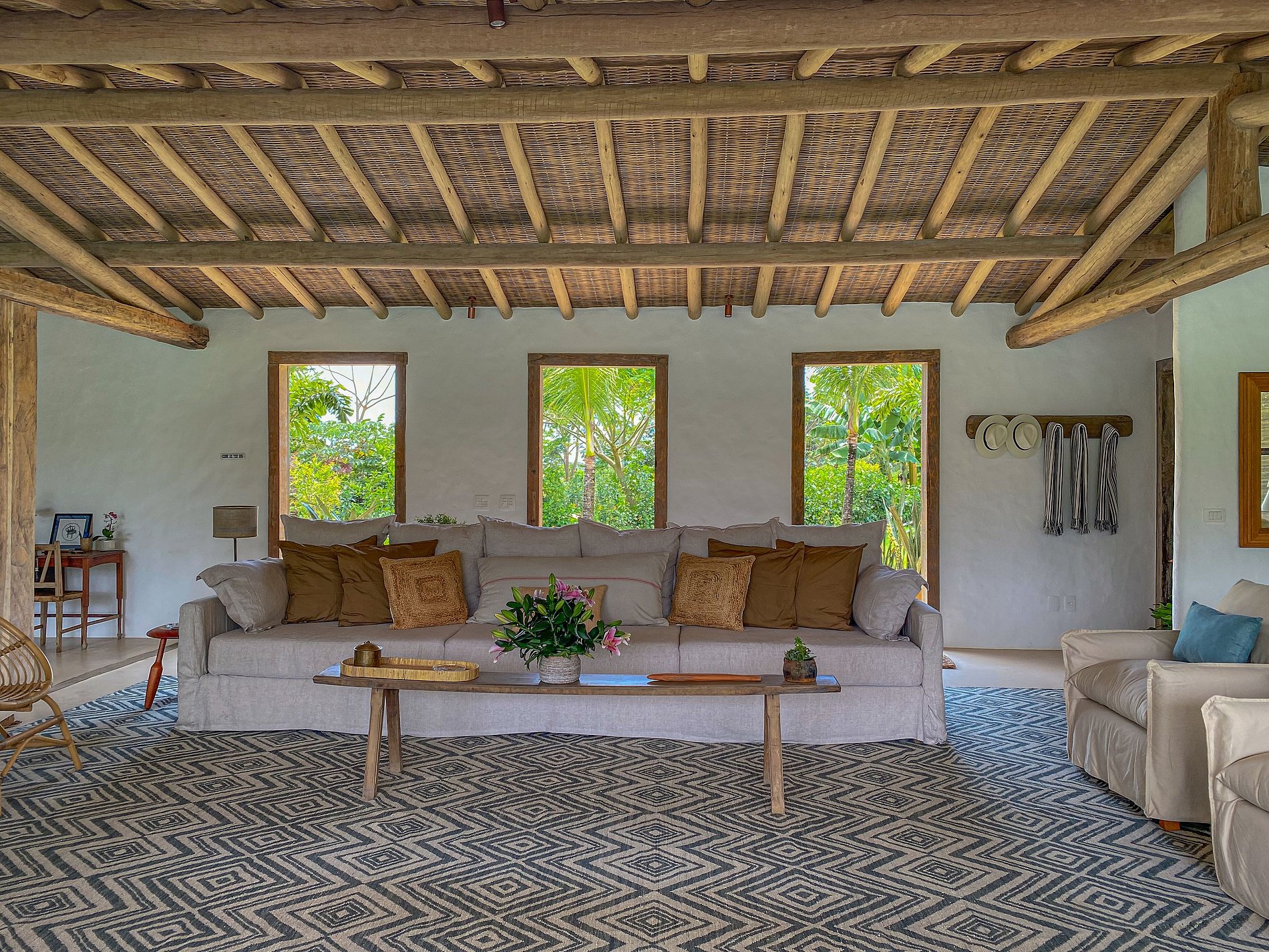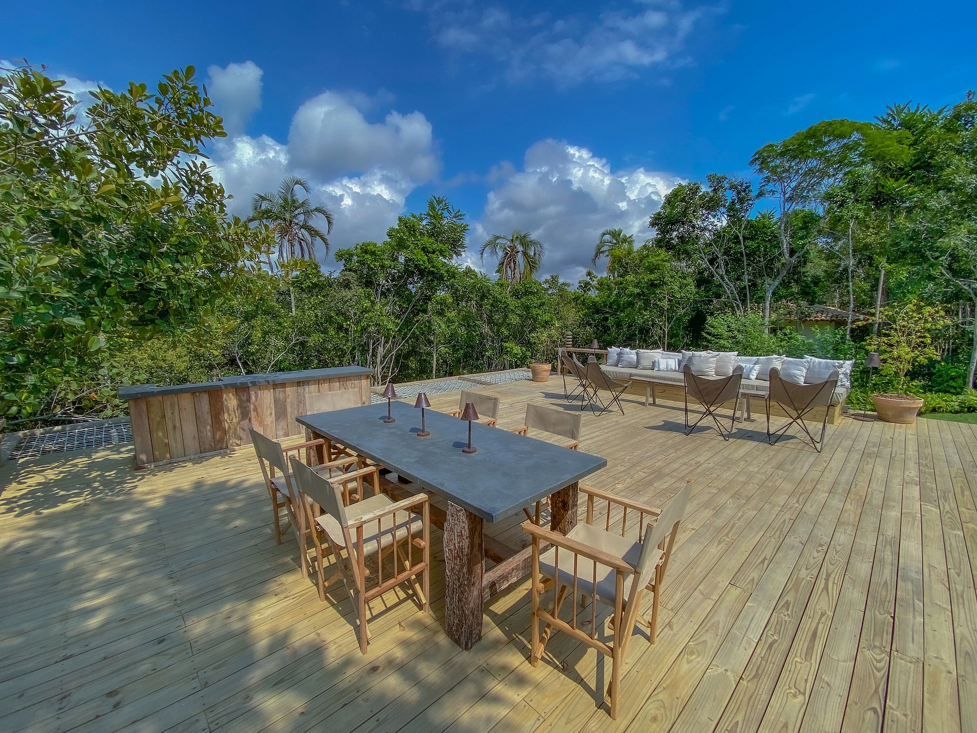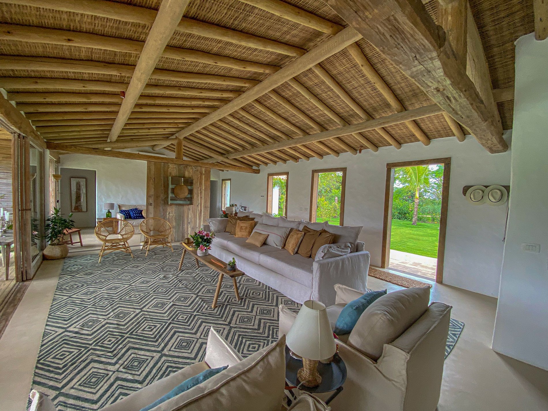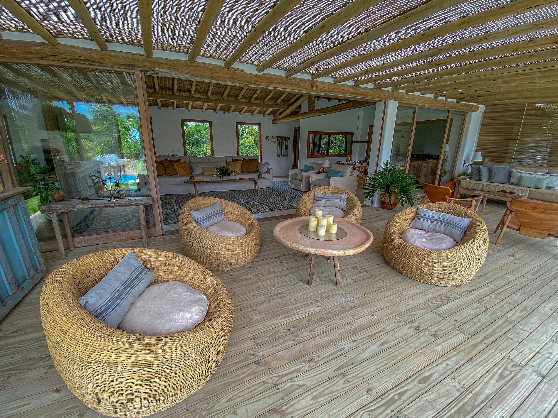 Ampio soggiorno integrato con la sala da pranzo, sala TV semi-privata e cucina americana, con ampio spazio aperto, completamente integrato all’area relax. Barbecue, piscina, divani esterni, amache sospese sulla foresta e un tavolo per cenare sotto le stelle, il tutto circondato da un magnifico deck e immerso in un lussureggiante giardino tropicale. Il lounge esterno offre diverse opzioni e ambienti da godere sia di giorno che di notte.