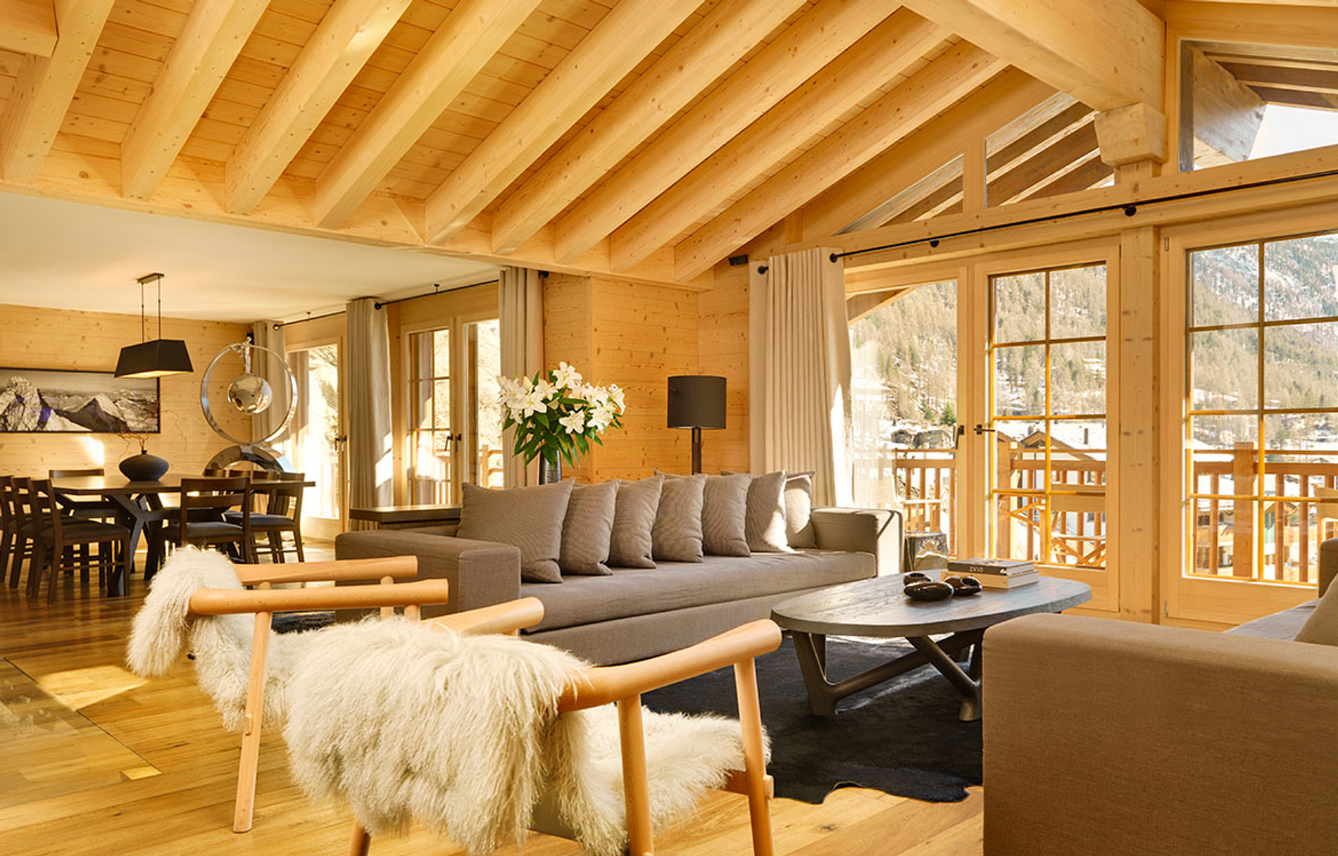 Chalet Sunnega em Zermatt, no topo das montanhas, com 6 Suites é a escolha perfeita para quem gosta de esportes, contato com a natureza e tranquilidade.