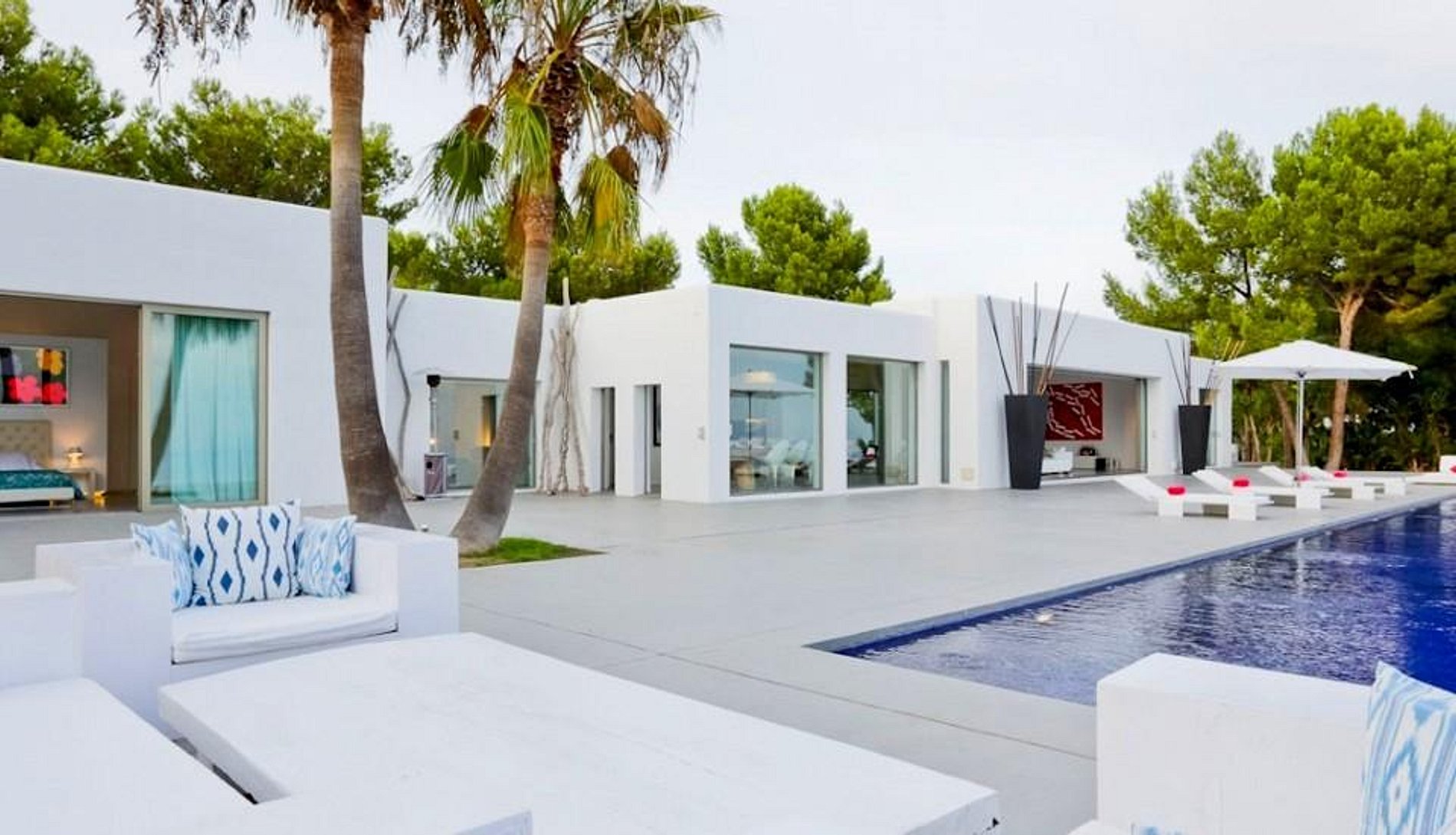 Casa Luxo Ibiza tem vistas deslumbrantes sobre o Mar Mediterrâneo. Em Ibiza são certamente o cartão de visita dessa vila. Com uma arquitetura moderna, a casa possui em toda sua extensão muito design e um mobiliário contemporâneo. Luxo, tranquilidade e conforto estão bem alinhados aqui. Casa Luxo Ibiza fica no alto, acima do mar, não muito longe de Es Cubells, rodeado por árvores e folhagens, com vistas panorâmicas sobre as colinas e, claro, o mar azul … Azul que se estende até o horizonte. Uma piscina infinita sugere uma ilusão de água com o mar e o céu, com amplas espreguiçadeiras que rodeiam a piscina. Uma área de jantar ao ar livre no terraço, um terraço coberto e áreas de estar que oferecem conforto para relaxar ao ar livre. O interior da casa estende-se a 550 metros quadrados..