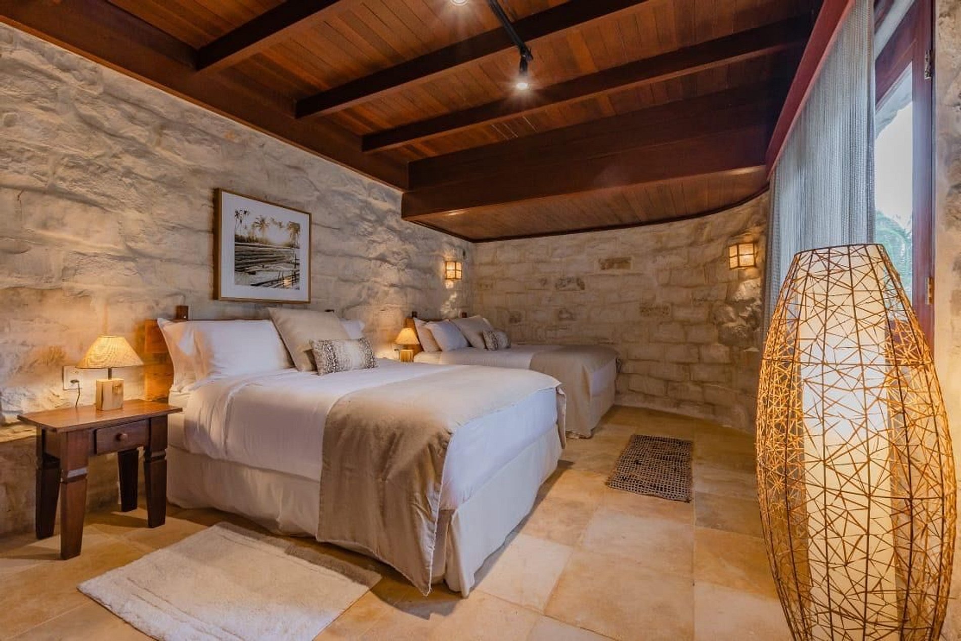 A casa possui 5 suítes e cada uma delas foi projetada para proporcionar conforto, equipadas com mobiliário de design, roupas de cama 600 fios, travesseiros de pluma, ar-condicionado, toalhas gigantes trousseau, amenities de banho, secador de cabelo e caixa de som alexa.