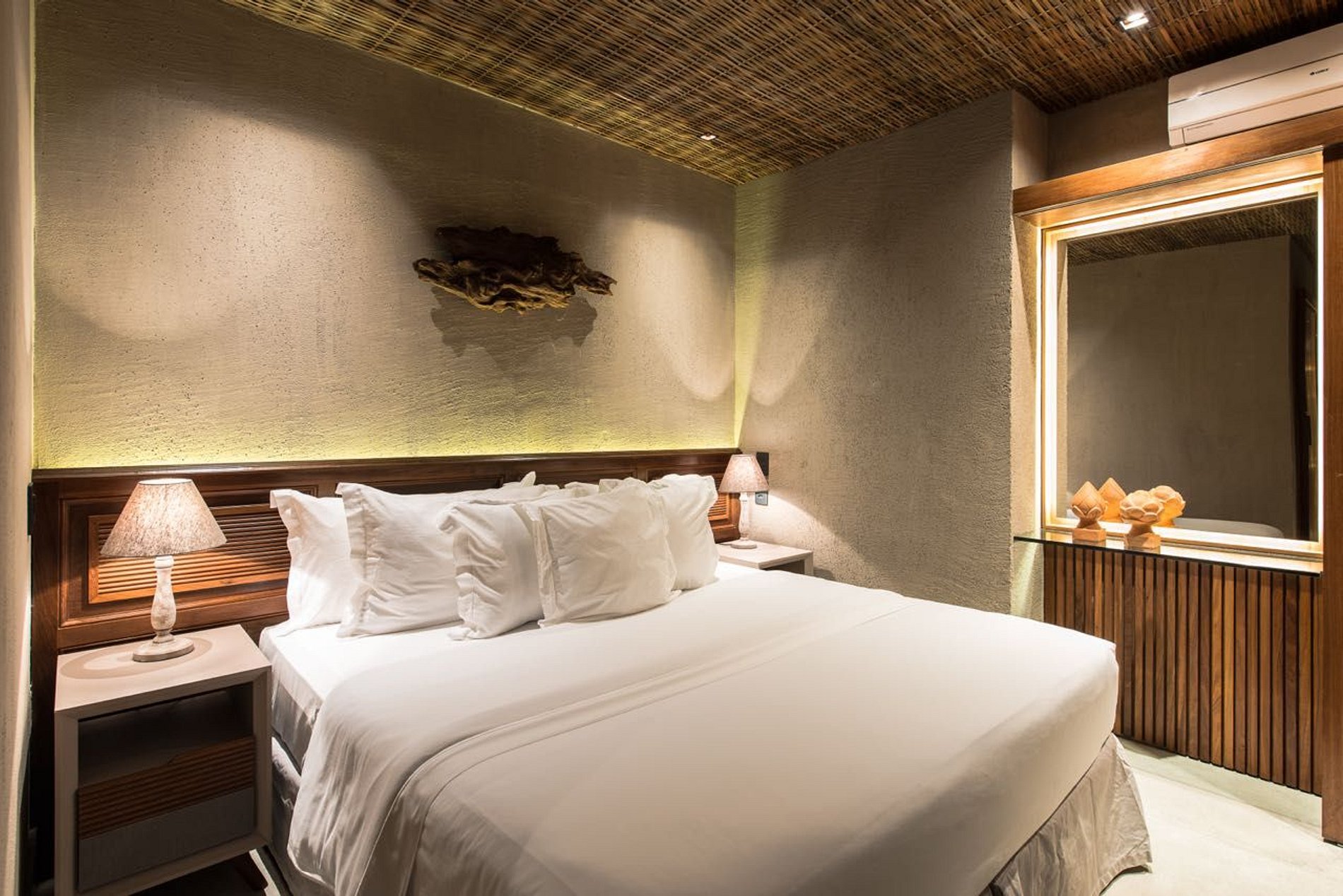 Os 11 amplos quartos da Pousada Maria Bonita foram pensados para que o hóspede sinta-se no aconchego de uma casa de praia luxuosa e super confortável. A decoração rústico-chique é complementada pela qualidade em cada detalhe, dos lençóis trousseau às amenities Costa Brazil, do frigobar ao secador de cabelos. Ar-condicionado e internet wireless estão disponíveis em todos os quartos. As TVs full HD de 48 polegadas permitem que se possa aproveitar os canais a cabo ao fim de dias repletos de praia, mergulho e atividades ao ar livre.