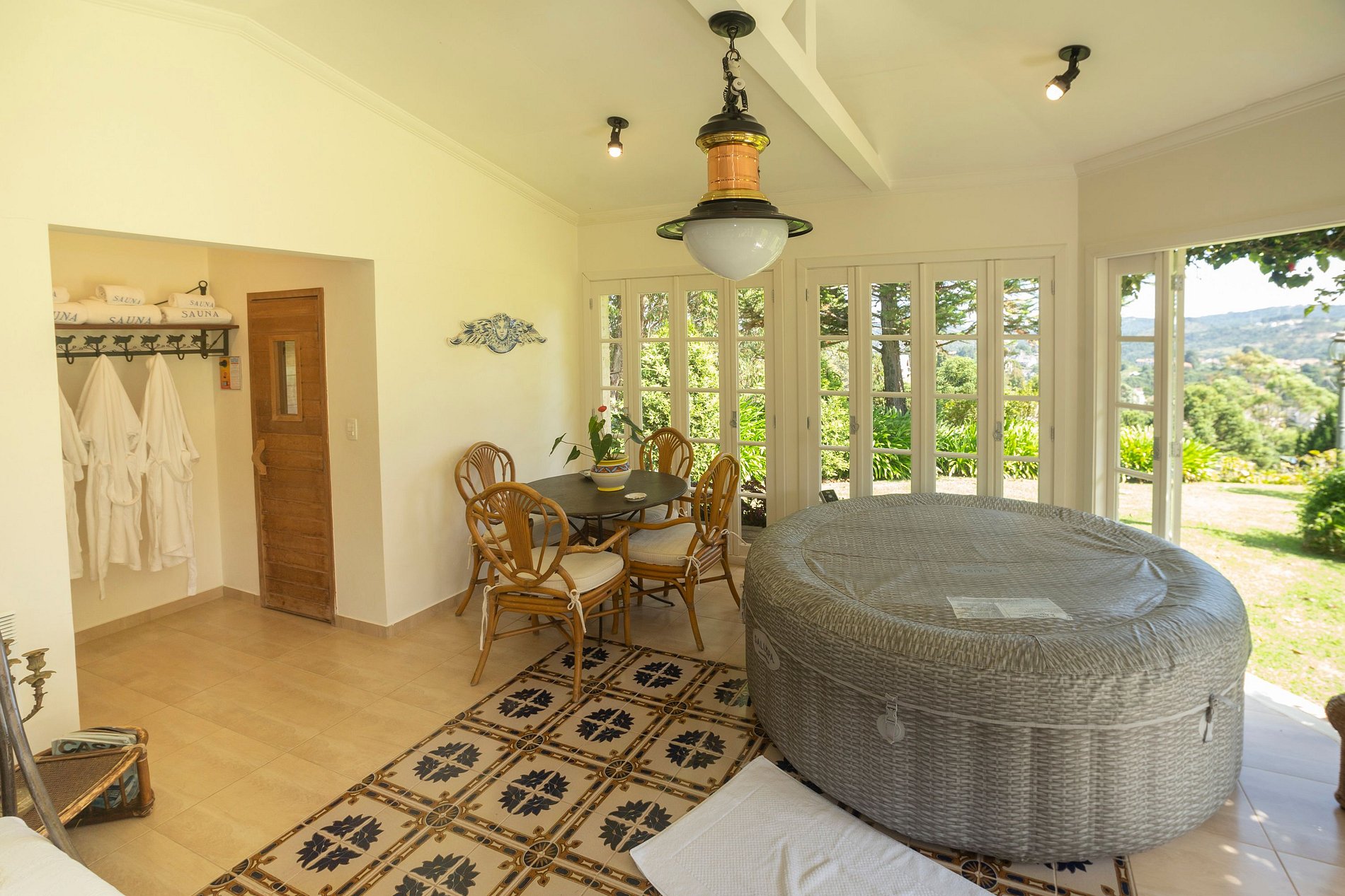 Vila Elegancia é uma casa diferenciada por sua elegância nos detalhes da decoração e na preocupação com o conforto de seus hóspedes. O hall de entrada tem piso de mármore aquecido e uma bela escada com um grande janelão de vidro que permite a incidência de luz natural; uma grande sala de estar com lareira e vista para o jardim; sala de jantar decorada com aparador e mesa de madeira com 8 cadeiras, aberta para a cozinha facilitando o serviço dos gourmets; e saleta de TV com Sky, DVD.