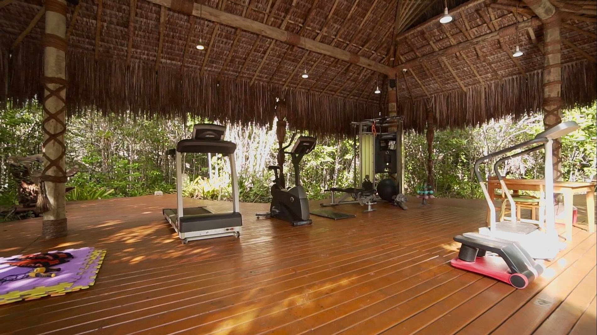 São 15 ambientes orgânicos, vestidos com 60km de corda de piaçava, distribuídos nos 21 mil metros de restinga, adaptados à própria natureza, o que faz com que nos sintamos integrados nela.
