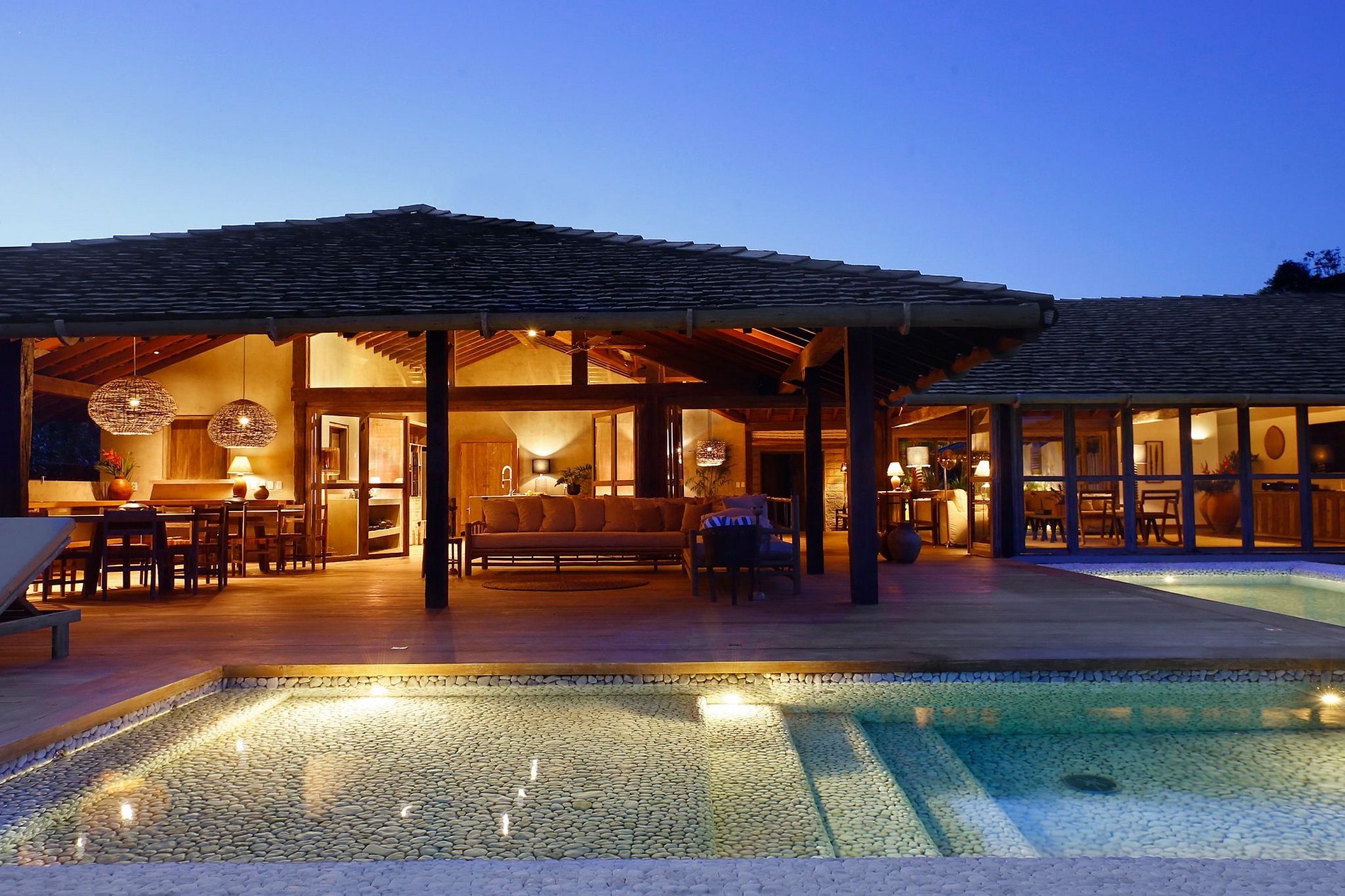 Com uma decoração espetacular, essa casa de alto padrão, com 5 suítes e uma incrível vista mar está localizada no Condomínio Altos de Trancoso. Um condomínio seguro, próximo à Praia dos Nativos e, ao mesmo tempo, próximo do Quadrado, o famoso canto rústico-chique de Trancoso.