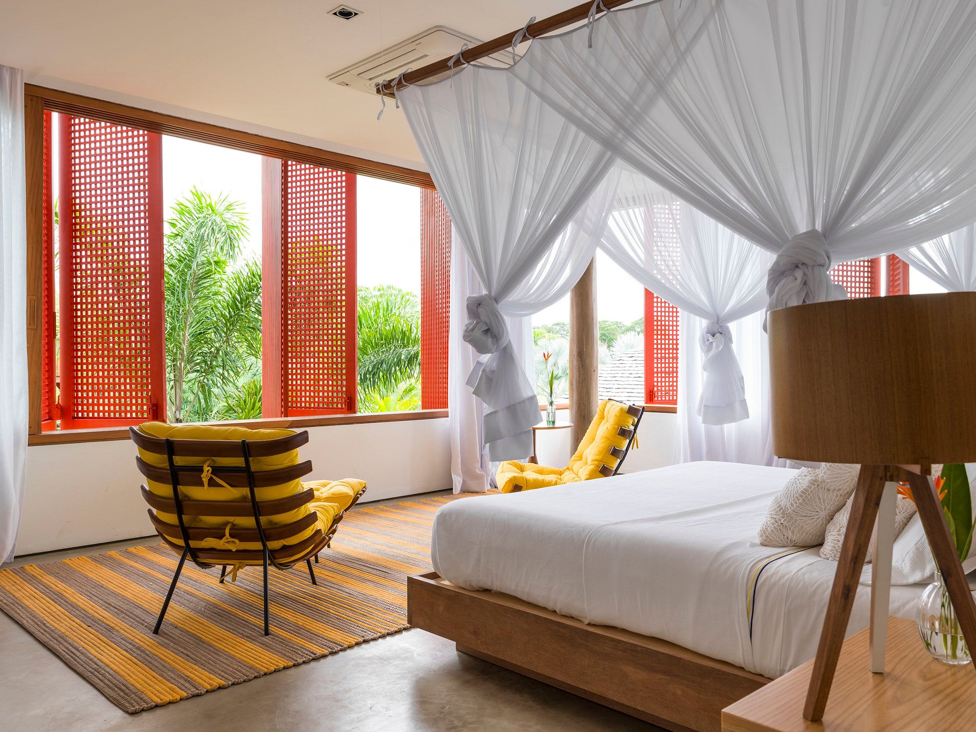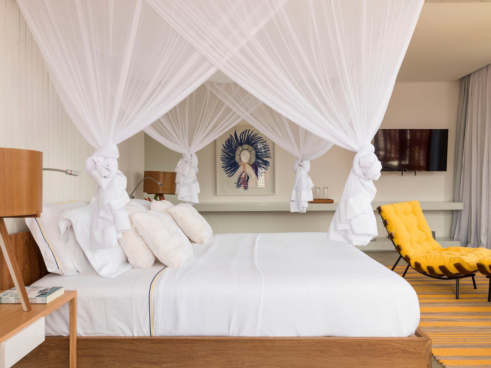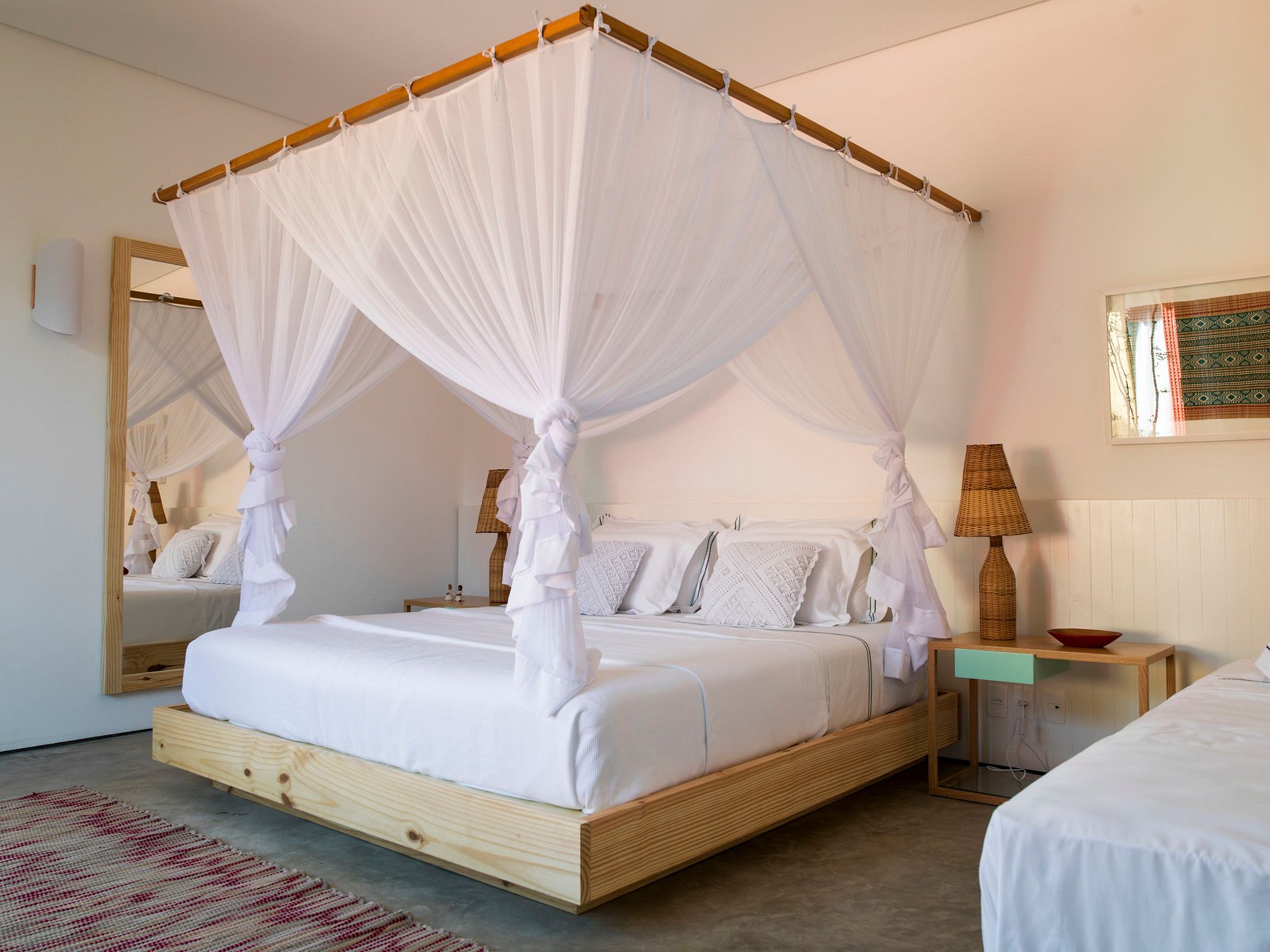 Suíte 6 – 1 cama de casal king size, mosquiteiro, ar condicionado.