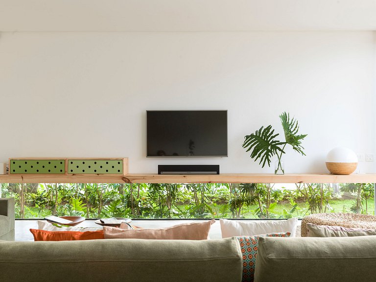 Esta casa está localizada dentro do complexo Terravista, com extensa área verde e incríveis paisagens ao redor. Com projeto arquitetônico de Claudia Haguiara, a casa exibe uma decoração arrojada e moderna, com muita luminosidade natural, belas vistas para o campo de golfe e para os jardins.