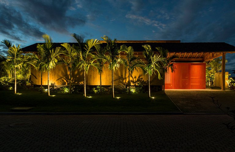 Com redes para descanso, piscina com espreguiçadeiras dispostas ao longo do elegante deck em madeira, sofás, e um charmoso pergolado. A sua área externa é adornada com belos jardins e espaços de convivência ao ar livre para relaxar sob o céu estrelado de Trancoso.
