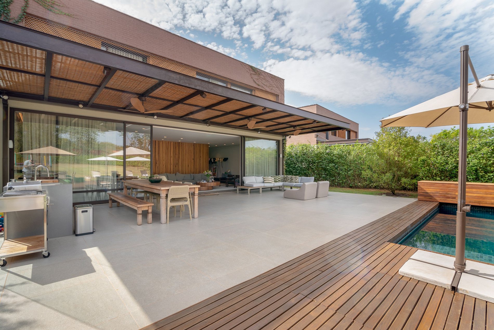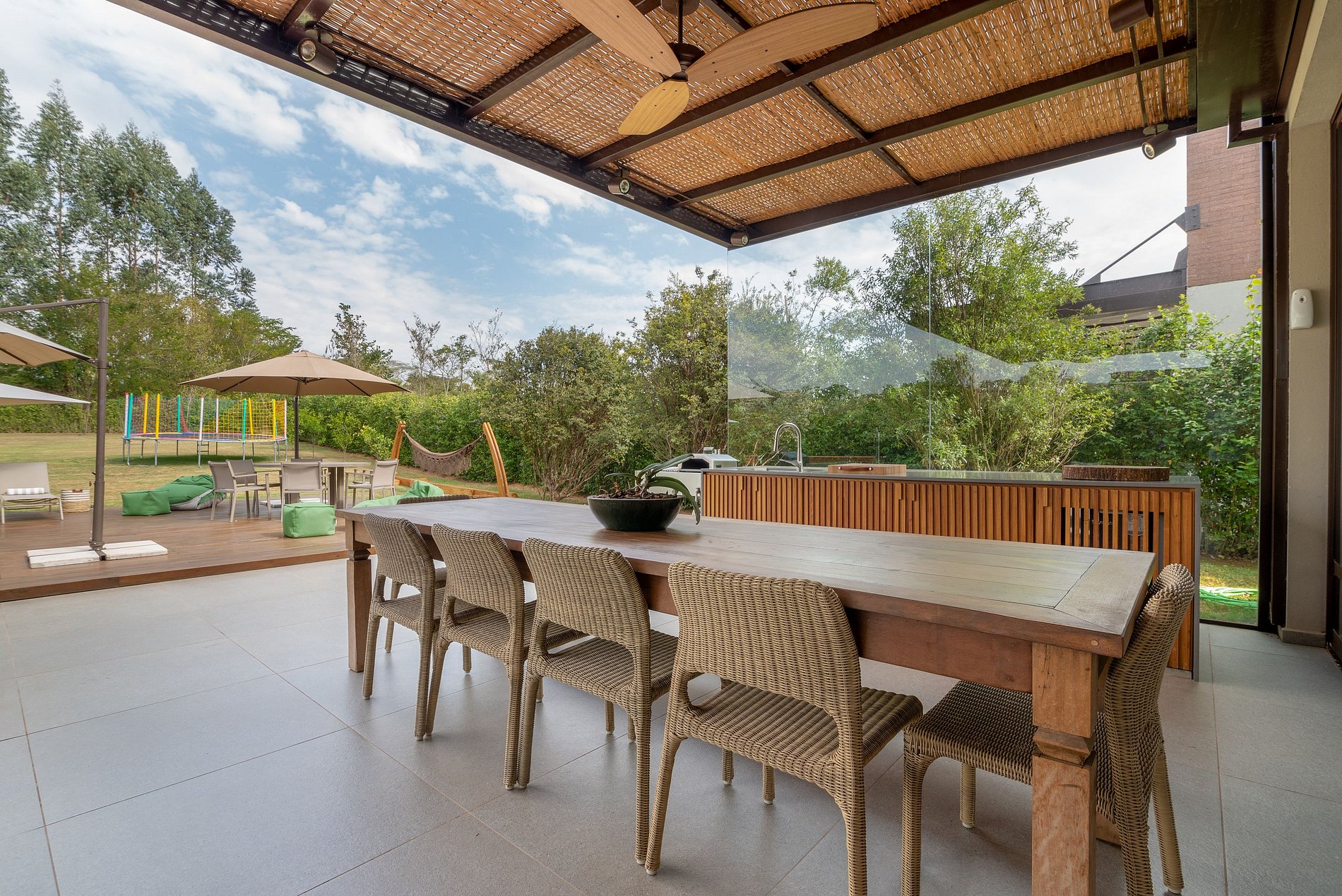 A encantadora vila, próxima ao campo de golfe, apresenta uma decoração elegante e ampla permitindo a luminosidade natural, tornando o ambiente confortável. Possui 3 suítes e 1 suíte para crianças, além de sala de estar, sala com projetor de cinema/home theater e um escritório completo com tela para computador, cozinha com um freezer grande. Dispõe também de piscina com aquecimento solar/térmico e aquecimento a gás chegando a quase 40 graus, área gourmet com churrasqueira, máquina de gelo, refrigerador horizontal profissional, forno a lenha, mesa de sinuca, mesa de ping-pong e pula pula.