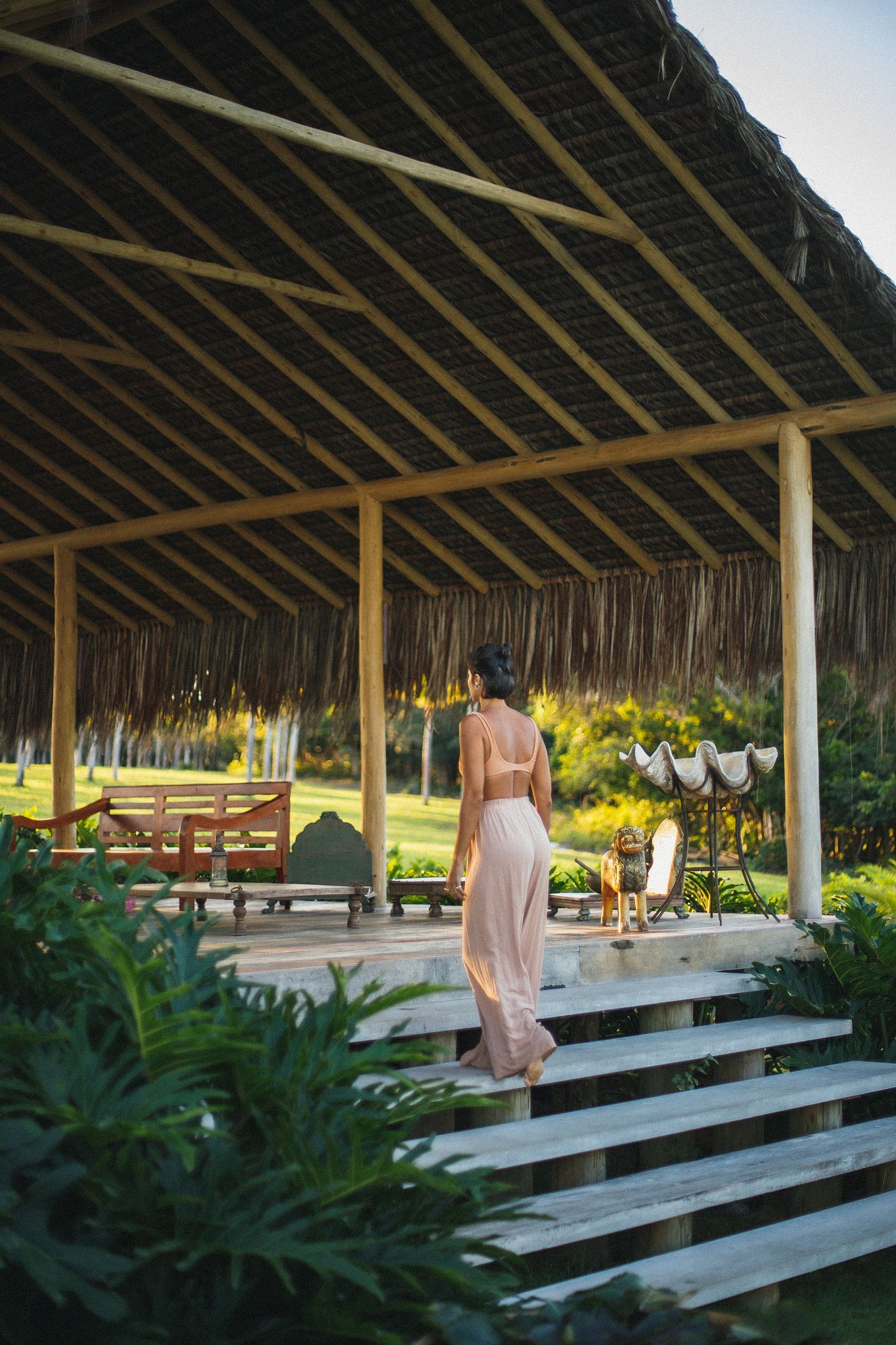 Com apenas quatro bungalows e uma casa rústico-chique a arquitetura é pra lá de elegante, em meio a um jardim de coqueiros e uma vista deslumbrante para o mar, avistando-se a Ponta de Juacema e Corumbau.