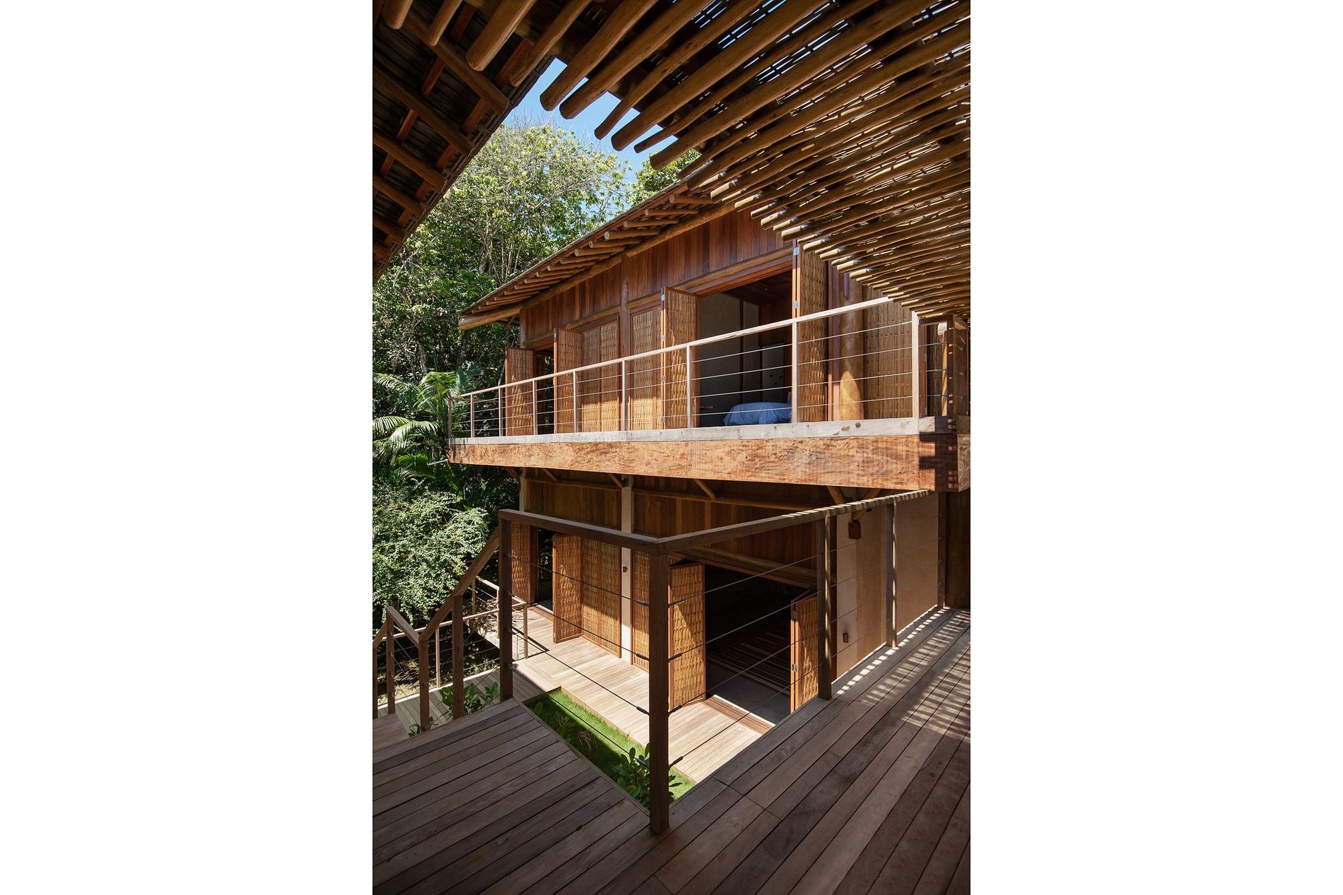 Localizada em frente ao mar, ao lado das praias da cidade de Itacaré. Possui 8 suítes, área social no bangalô central, área gourmet sob pergolado, varanda, piscina privativa e as suítes interligadas por decks.