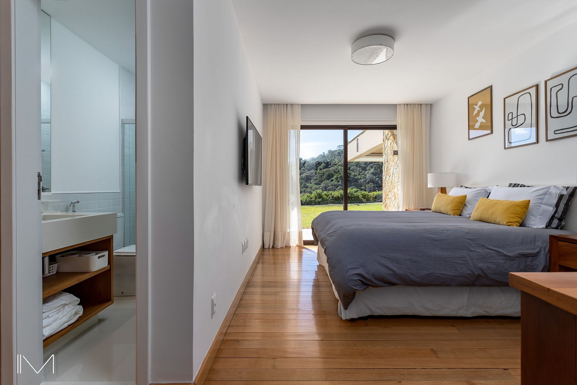 Composta com 5 suítes, sala de estar, piscina com uma vista fantástica, quadra de tênis e beach tênis de grama, sauna a vapor, churrasqueira, forno a lenha, máquina de gelo, sala de jogos, mesa de sinuca, mesa de ping-pong, segurança 24h e portaria com controle de acesso.