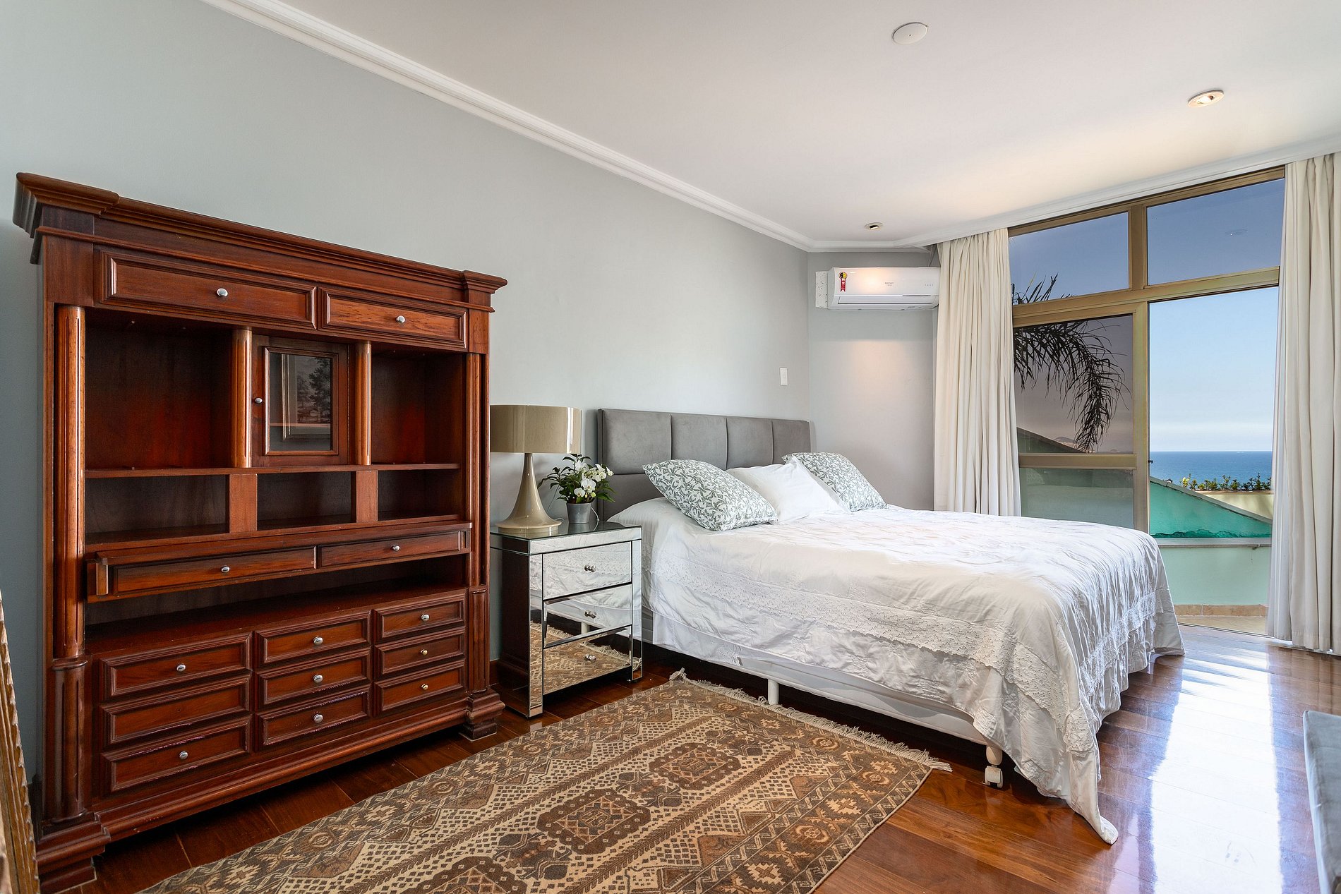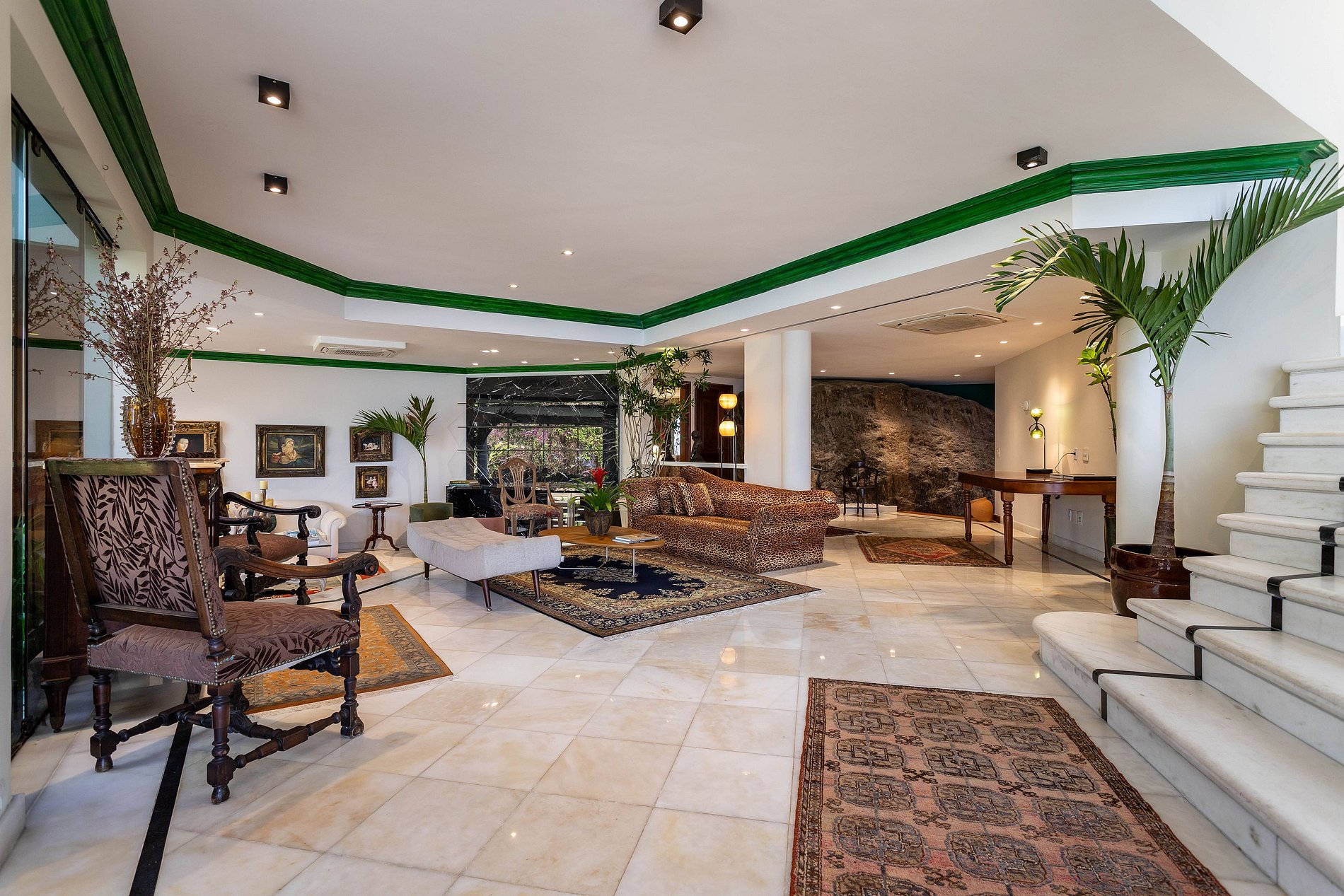 Emoldurada pelos morros Dois Irmãos e Pedra da Gávea, sua agradável piscina e bar dentro da piscina, é um dos pontos altos da casa.