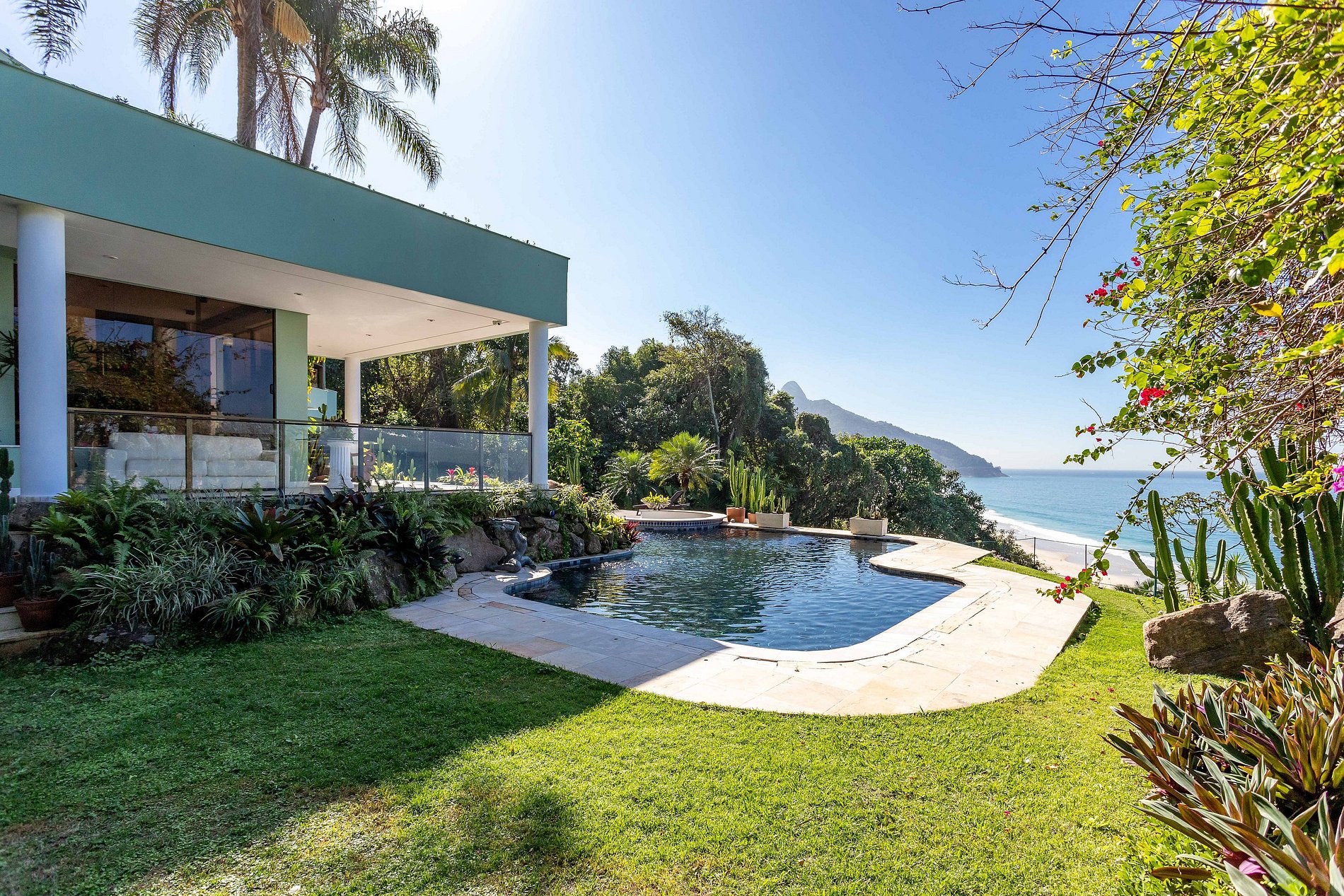 Emoldurada pelos morros Dois Irmãos e Pedra da Gávea, sua agradável piscina e bar dentro da piscina, é um dos pontos altos da casa.