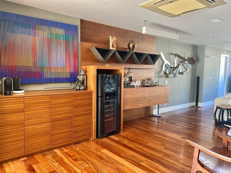 Essa cobertura tríplex em condomínio, espaçosa e aconchegante, está localizada no bairro do Leblon, zona sul do Rio de Janeiro.
