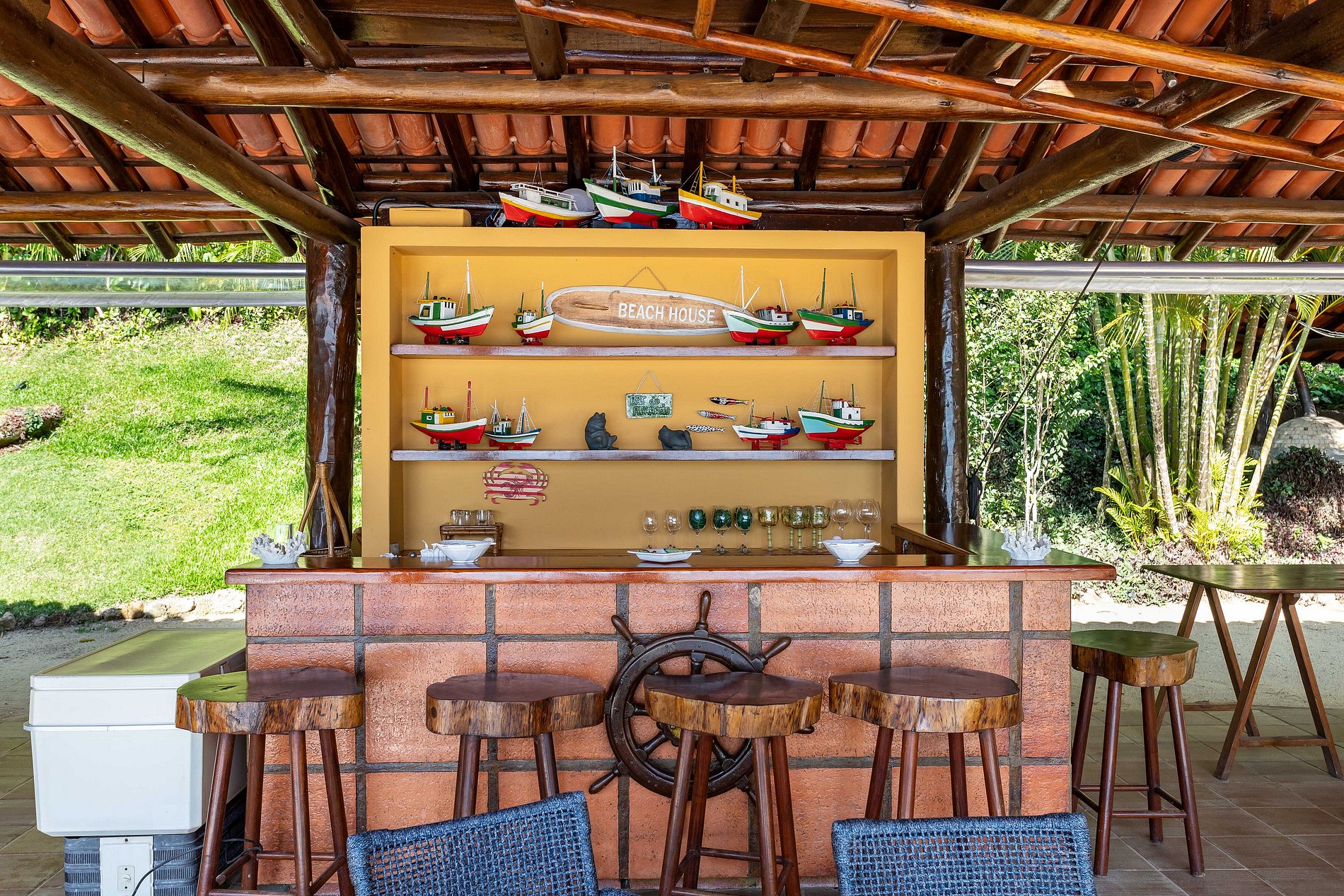 Possui na praia um caramanchão de apoio em frente à propriedade, para passar tempo de qualidade e se reconectar com o mar calmo, a areia dourada, os animais locais, os coqueiros que parecem que foram estampados neste cenário e apreciar ao pôr do sol ao lado das pessoas queridas.