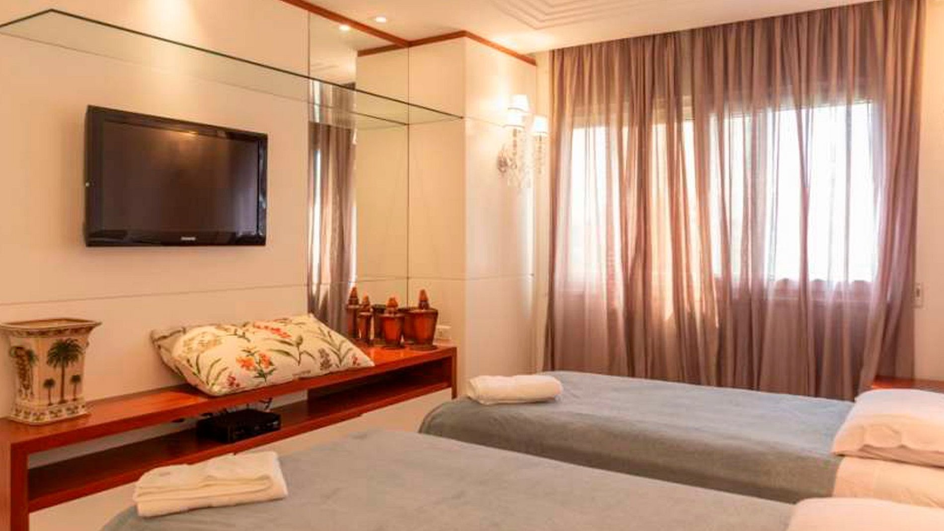 Possui 6 suítes, sendo 3 suítes com cama box casal e 3 suítes com 2 camas box solteiro. Amplo living, sala de jantar integrada com a cozinha gourmet e player center.