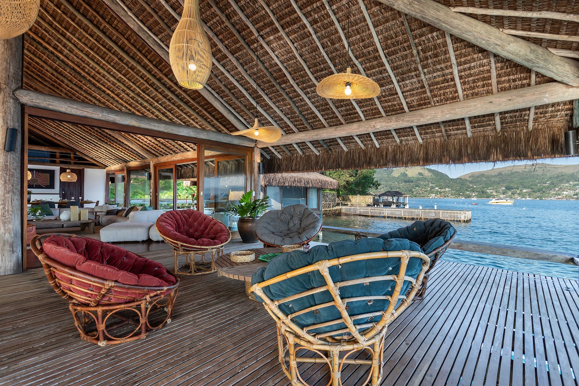 Neste cenário paradisíaco, suspensa sobre o mar, no estilo palaphitas e de beleza singular, a Vila Palaphita está localizada no condomínio Portogalo, em Angra dos Reis - RJ.
