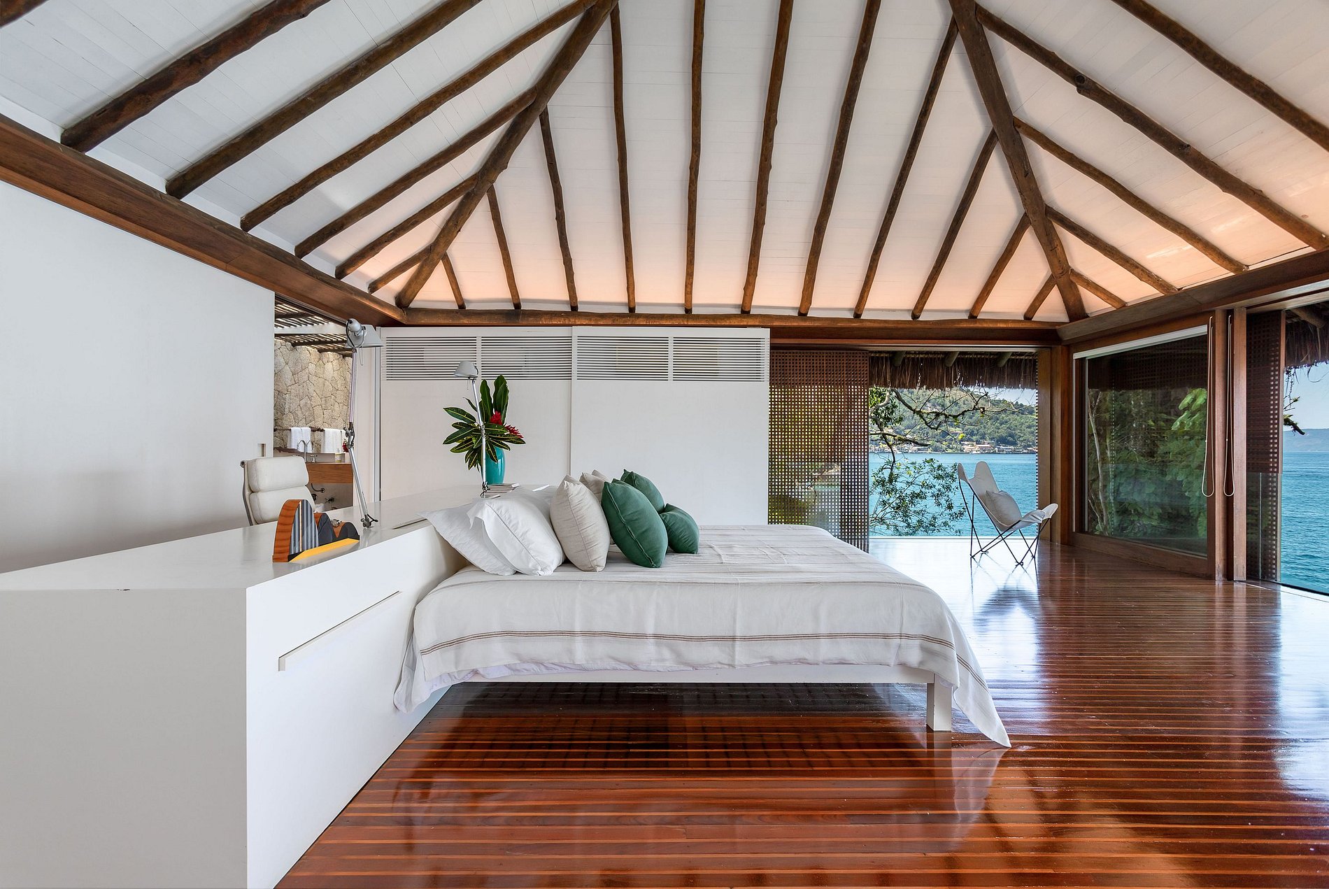 Suas 5 suítes abusam do vidro e a vista deslumbrante do oceano invade os quartos.