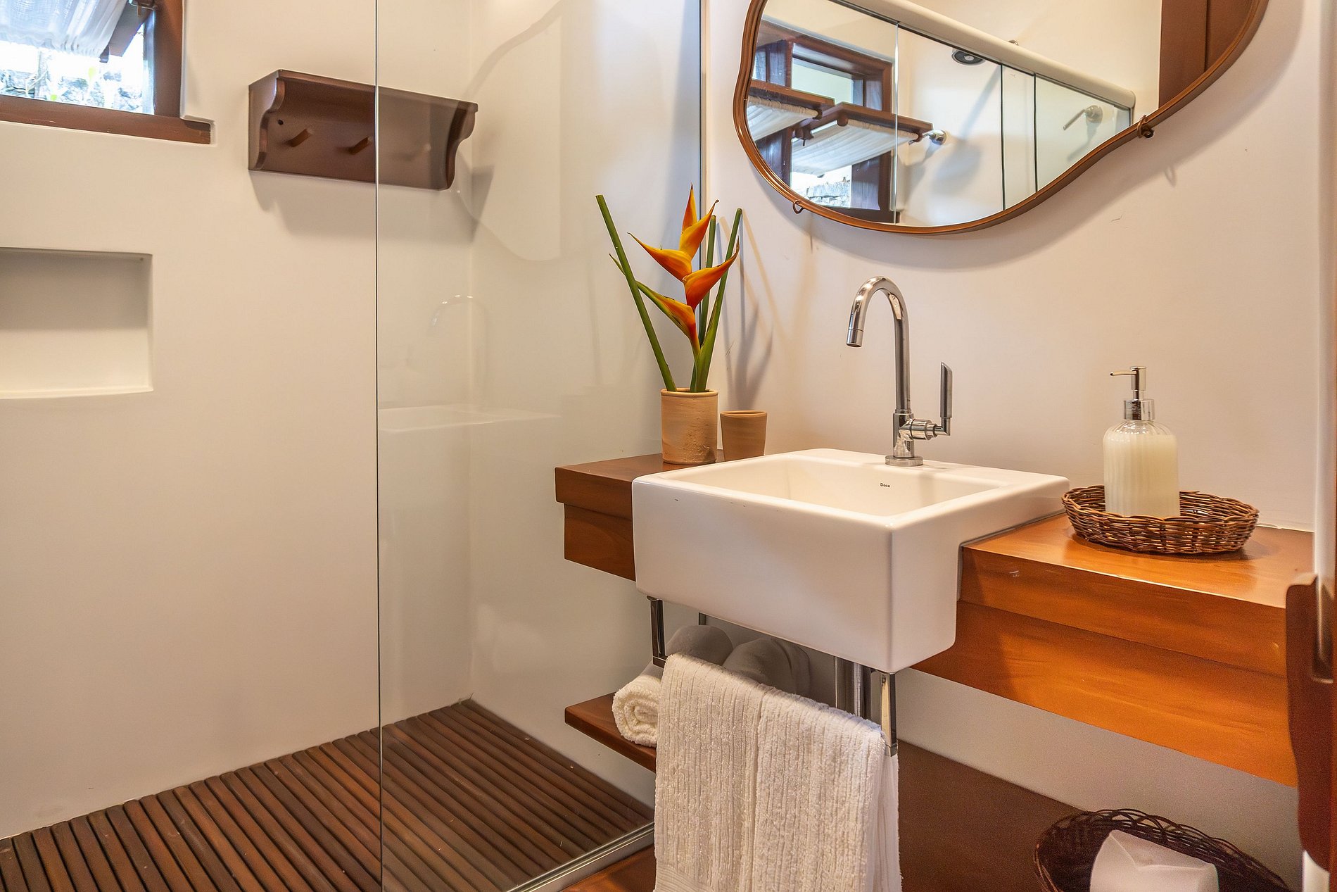 Vista para o jardim, banheiro, ar-condicionado.