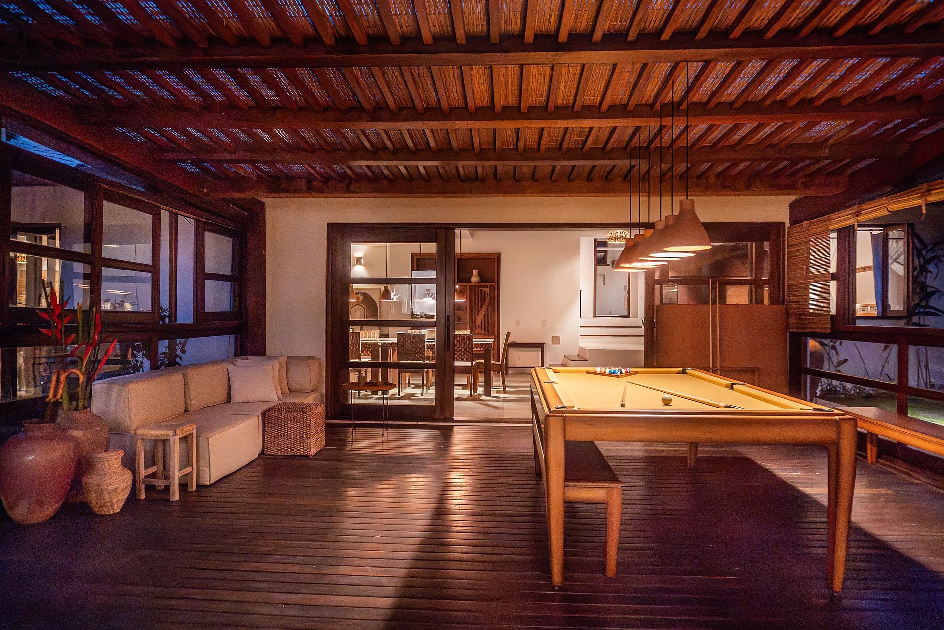 The 5 bedrooms were perfect for us. The house is very well equipped. I would highlight the TV room, which is spacious and very close to the pool and the house, a beautiful pool with its lounge chairs and umbrellas, the wonderful pool table, the location just steps away from the best spot on Trancoso’s most marvelous beach, a modern, clean, and very well-equipped kitchen, friendly and helpful support staff, and Thomas’s always prompt attention to questions, tourist advice, or resolving doubts. It was one of our best vacation experiences. I would definitely repeat.