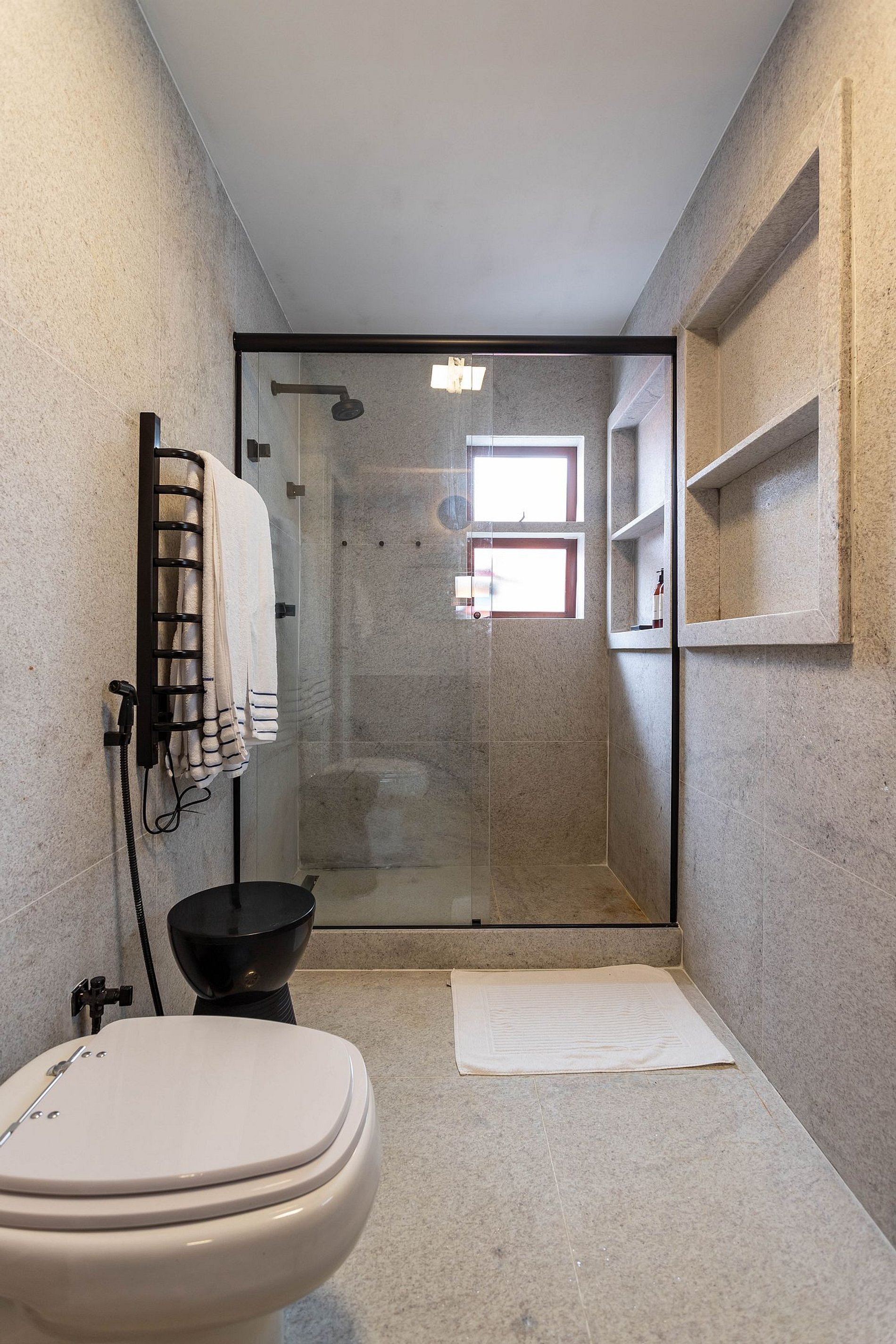 Com 9 quartos, sendo 4 suítes com vista mar e todos com ar condicionado. Uma das suítes junto à prainha particular é um dos quartos com bancada de trabalho e vista mar.