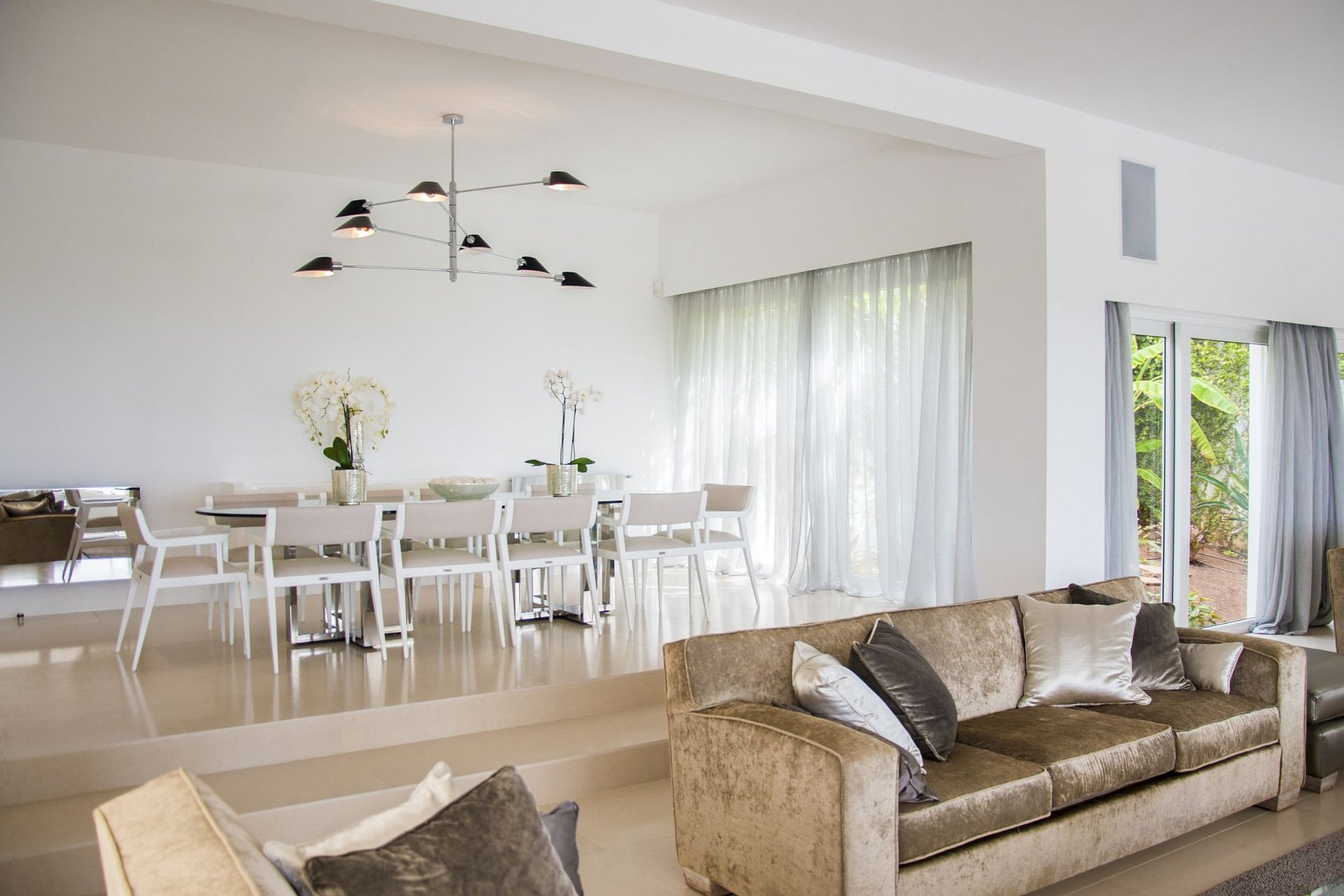 A vila possui diferentes tipos de ambientes para integração da família ou grupo de amigos como sala de estar para descontrair ou sala de jantar com mesa para acomodar 16 pessoas; como também varias suítes com sua própria varanda para os momentos de privacidade.