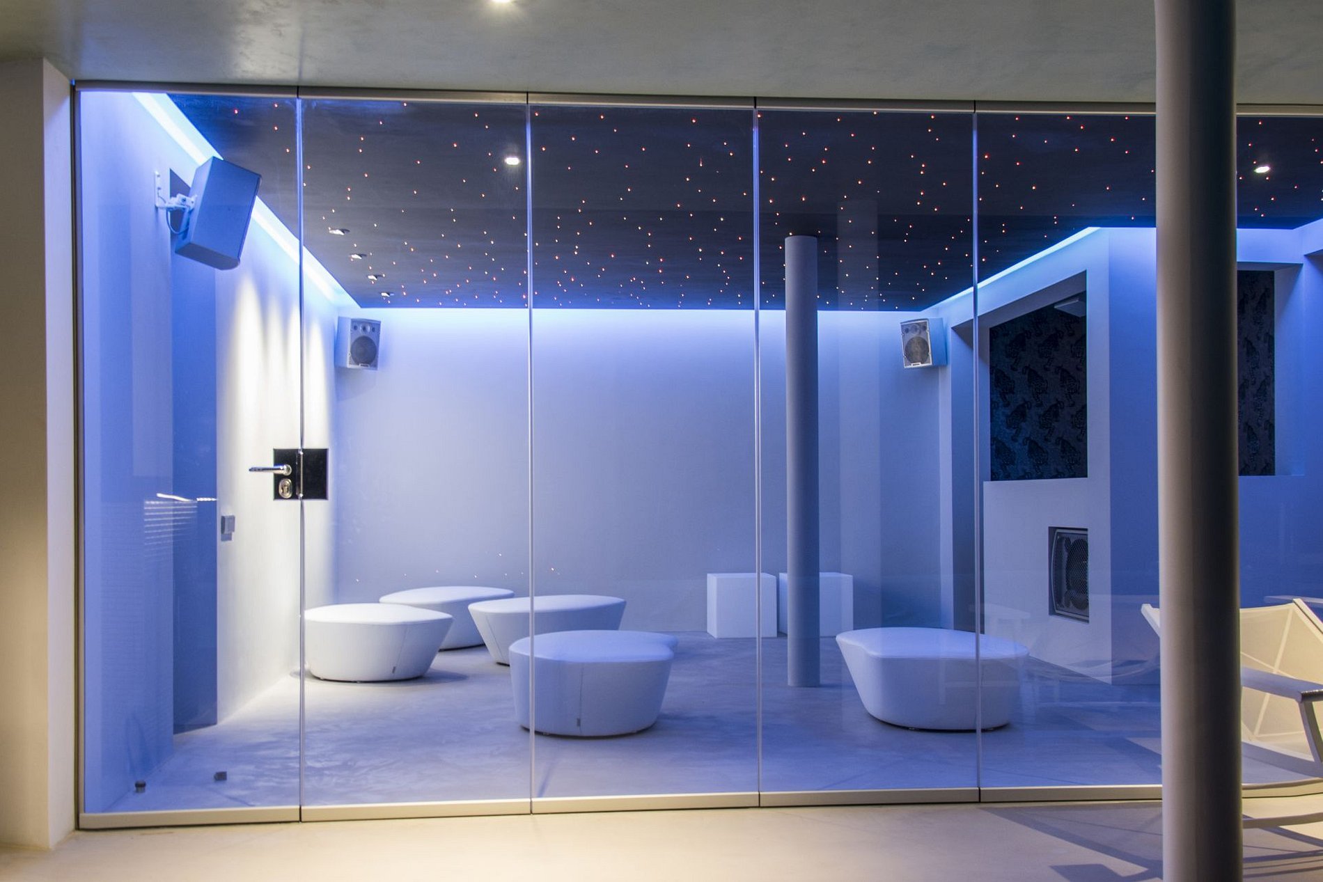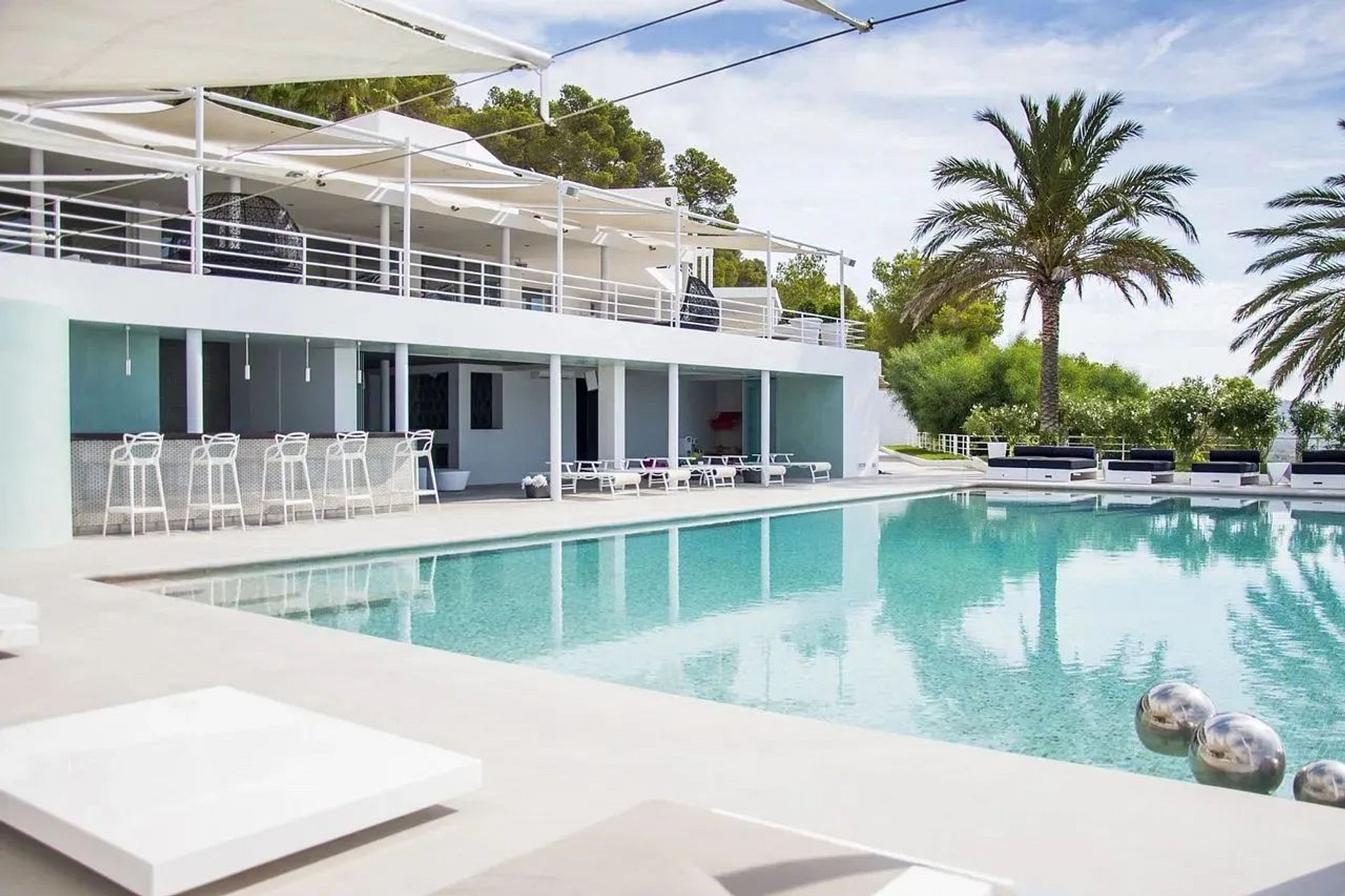 A Villa Fideli possui uma incrível Pool Club com piscina de borda infinita e vistas deslumbrantes da baia de Porroig e Formentera; bar externo coberto e um toillet. No último andar, há uma grande sala de TV com um sofá confortável que se abre para um grande terraço com uma academia ao ar livre para fazer exercícios ou contemplar o por do sol.
