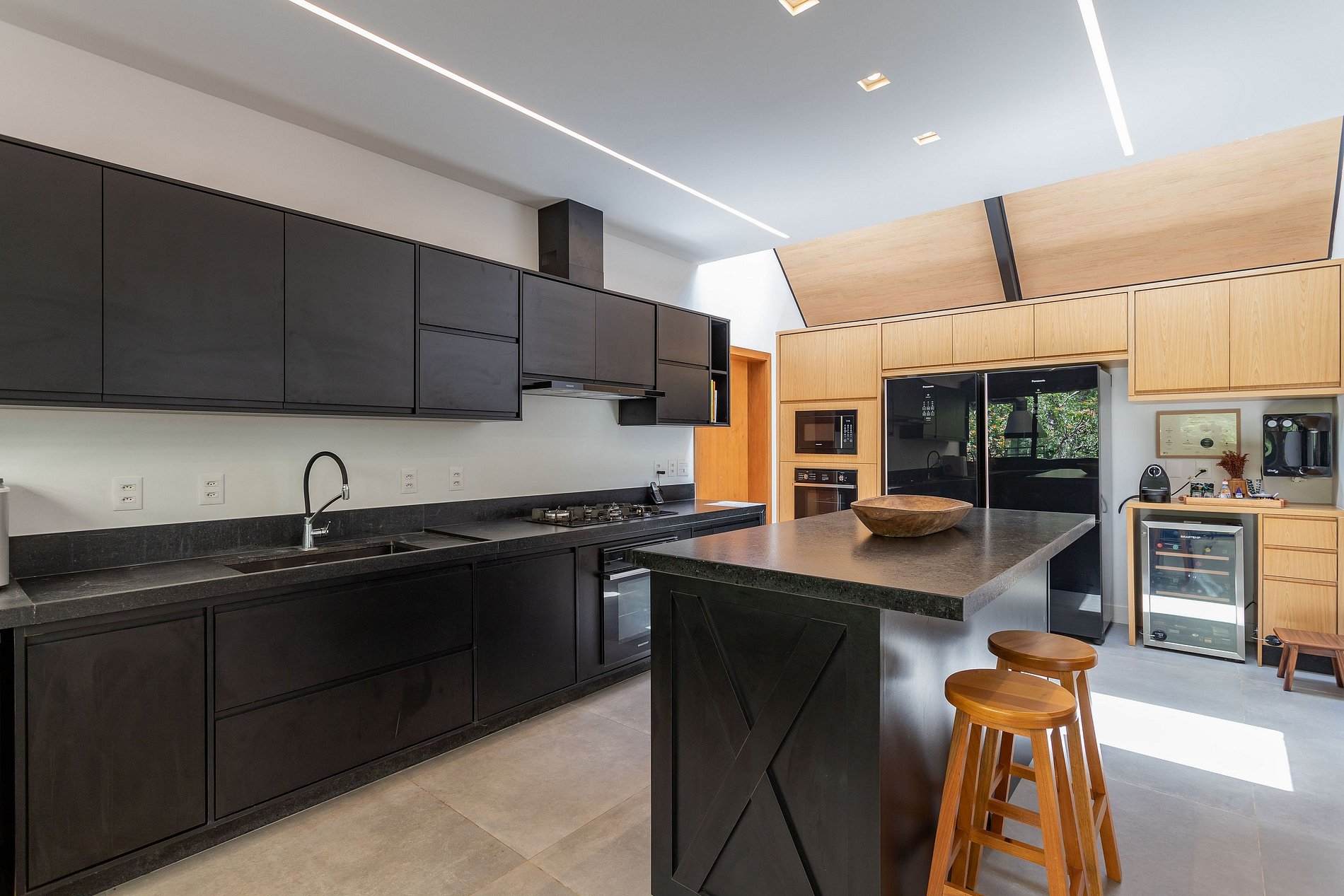 Recém construído em 2023, com o terreno de 5000m2, o projeto do arquiteto Sérgio Conde Caldas, a composição separa a casa em 2 blocos exclusivos.