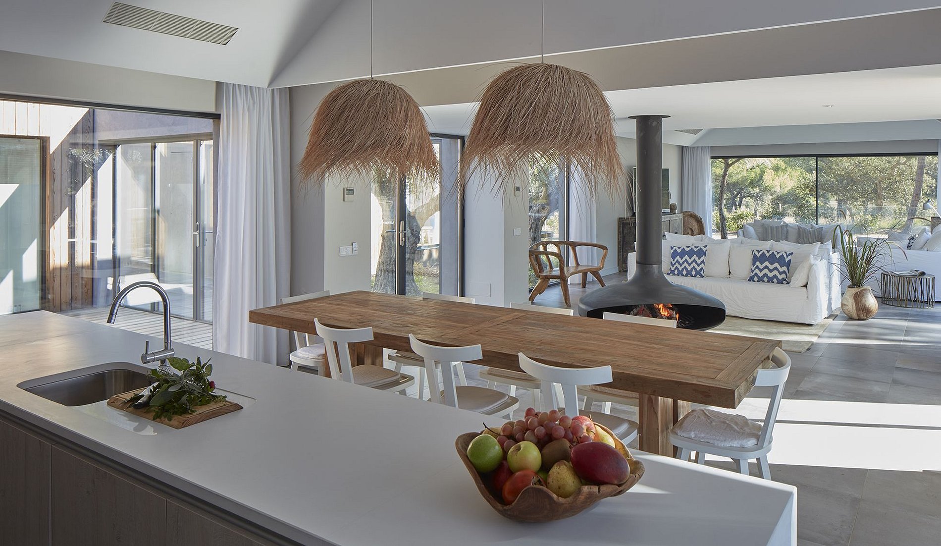 Uma visão contemporânea das tradicionais “cabanas” da Comporta, todas incluem uma ampla sala de estar com cozinha totalmente equipada e casa de banho para visitas, quartos com casas de banho privadas, incluindo grandes banheiras e chuveiros, lareiras suspensas, piscina privada e vários decks.