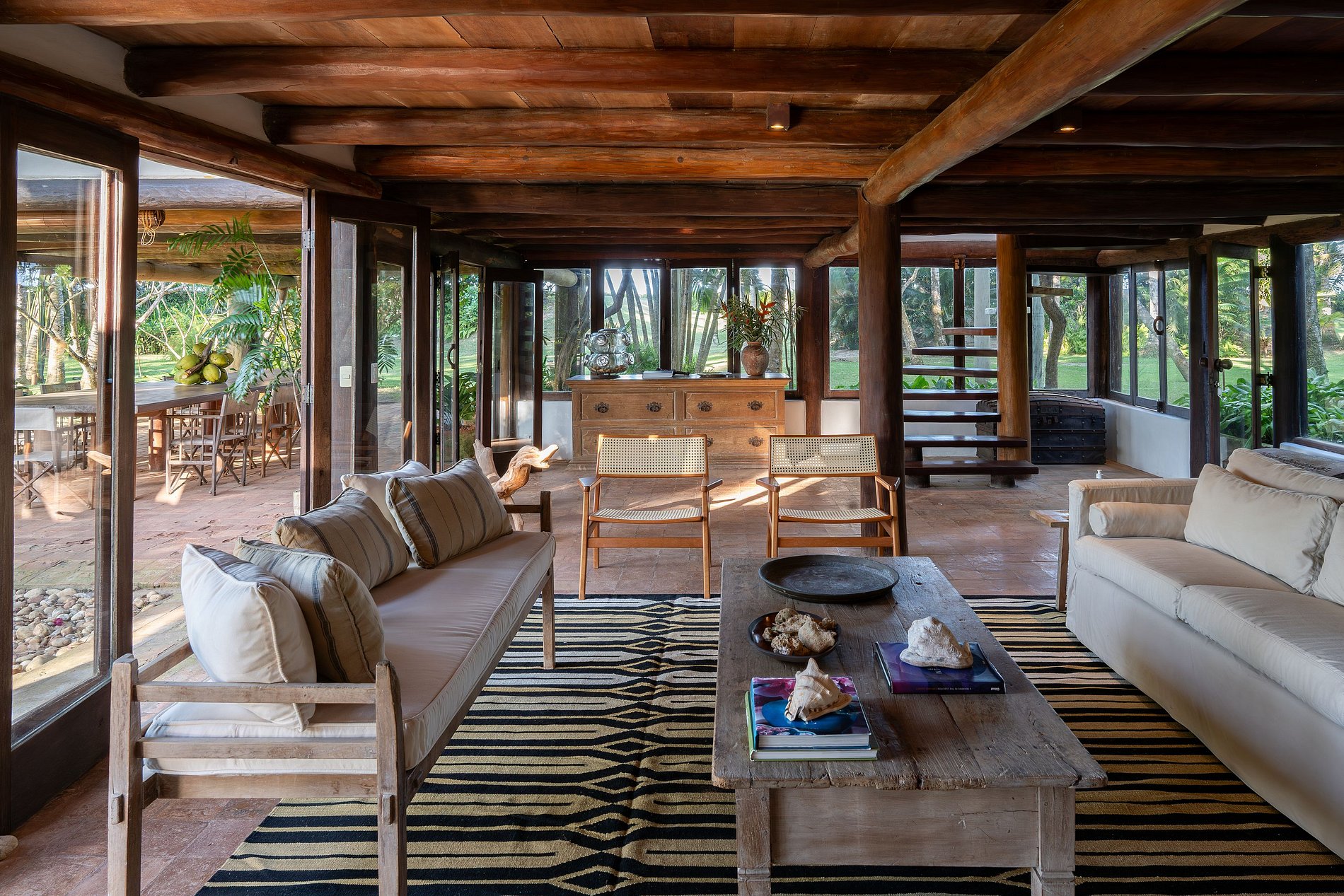 CASA PRINCIPAL com Sala de TV 65” com vista mar, varanda espaçosa, ventilador e AC; Sala de estar; Sala de jantar;Terraço com mesa para até 16 pessoas e Lavabo.