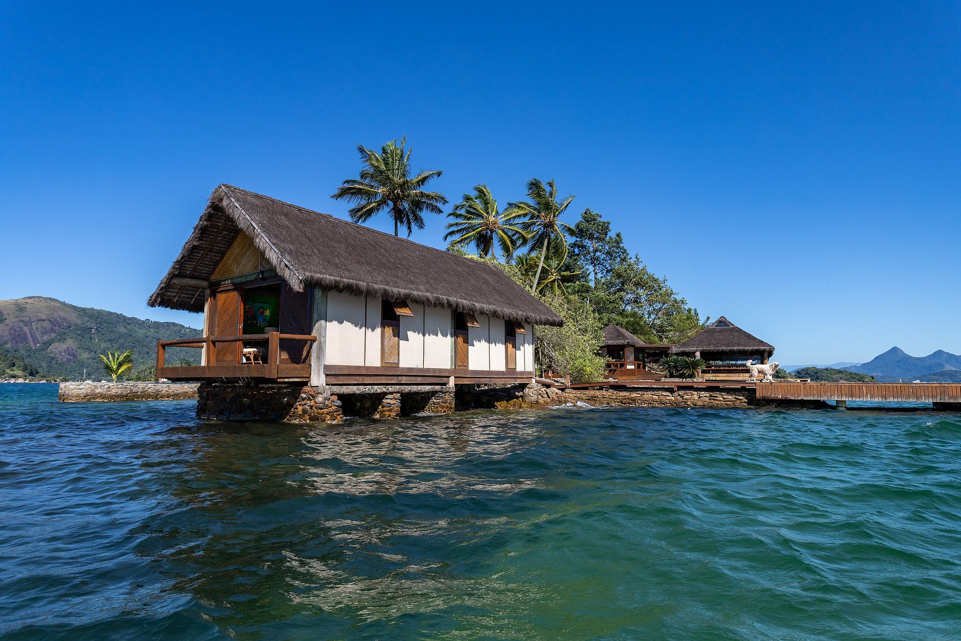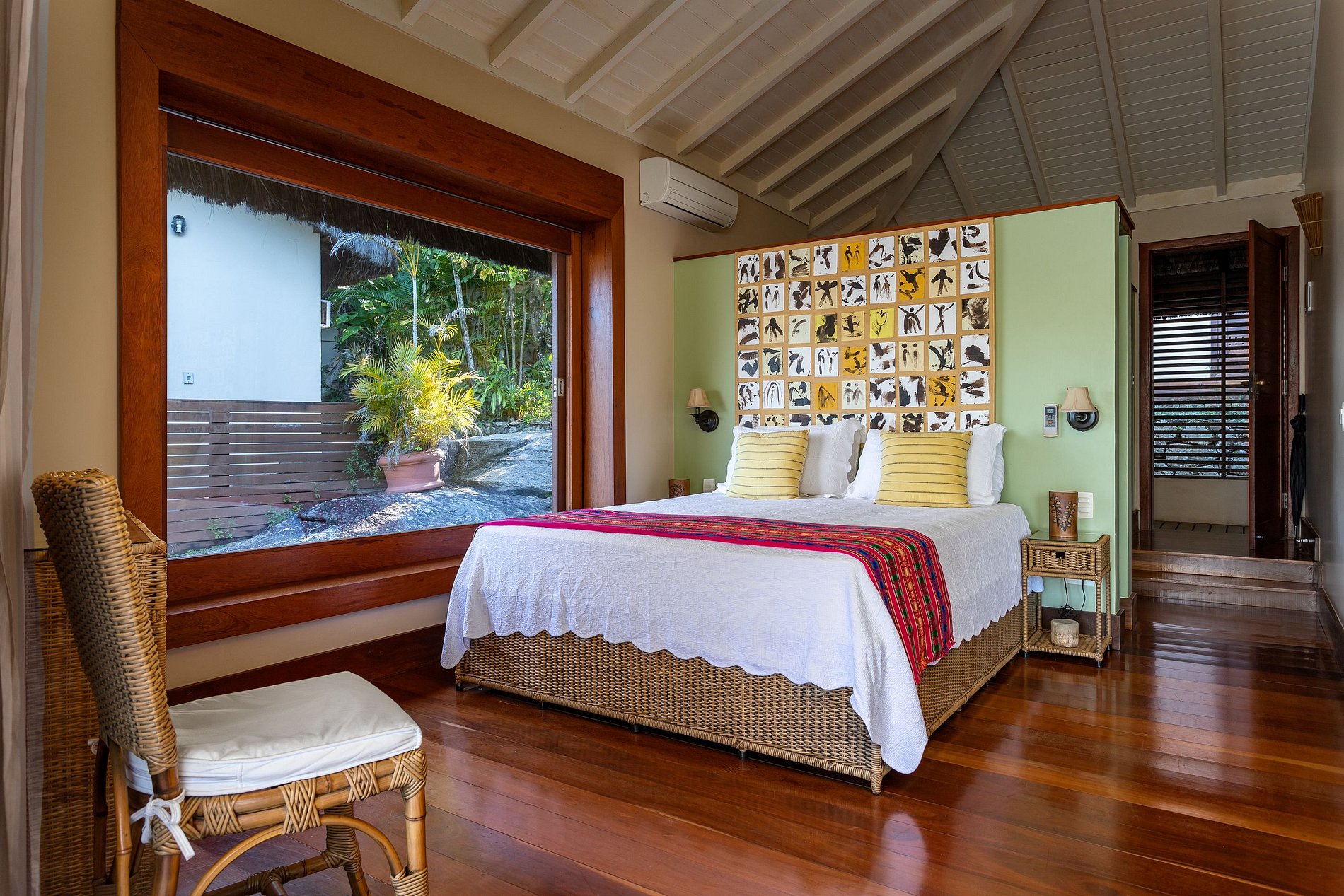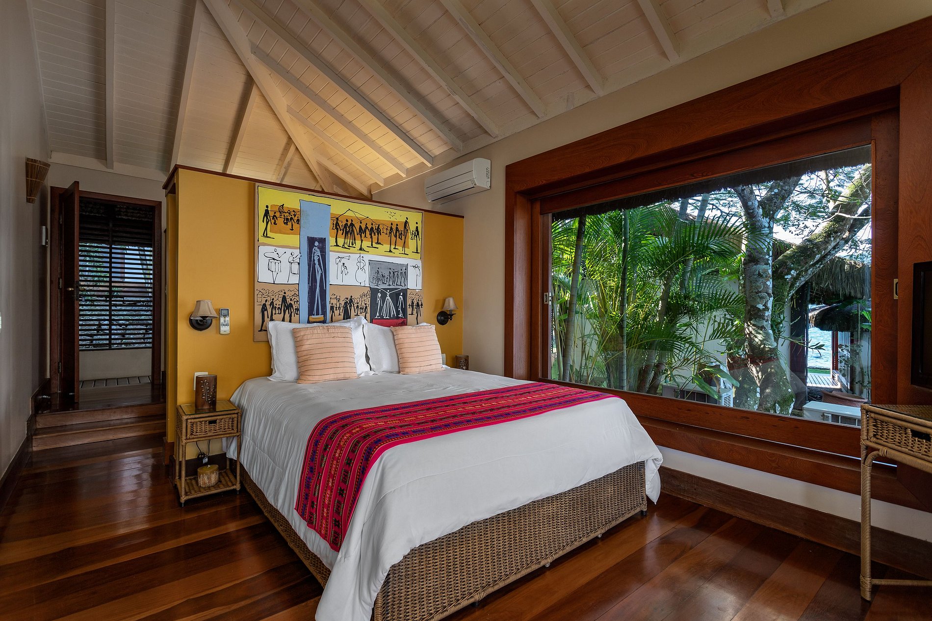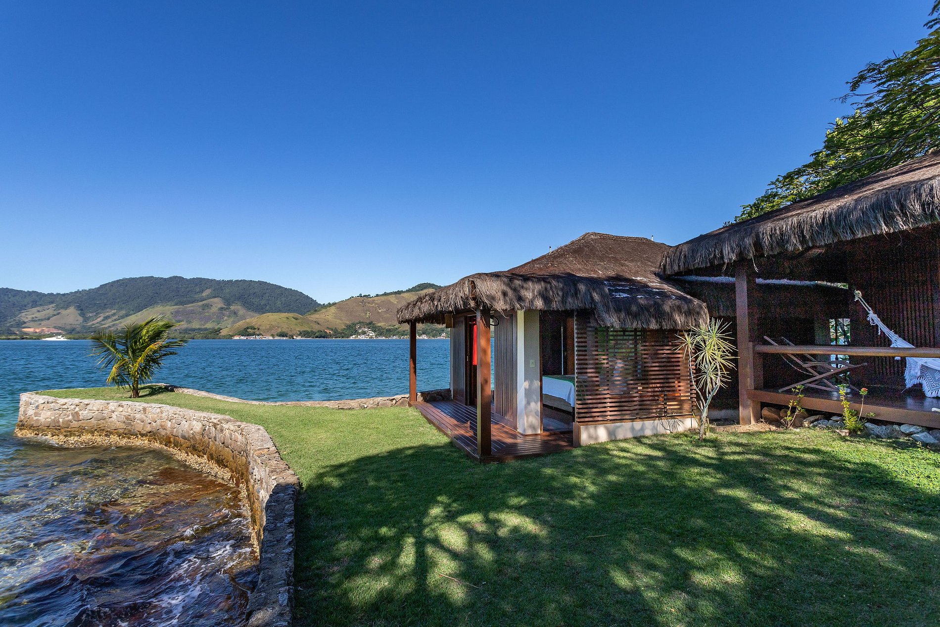 Ilha com 7 bangalôs, todos suítes, sendo 1 com 2 suítes conjugadas e outro com 2 suítes com mezanino e conjugadas.