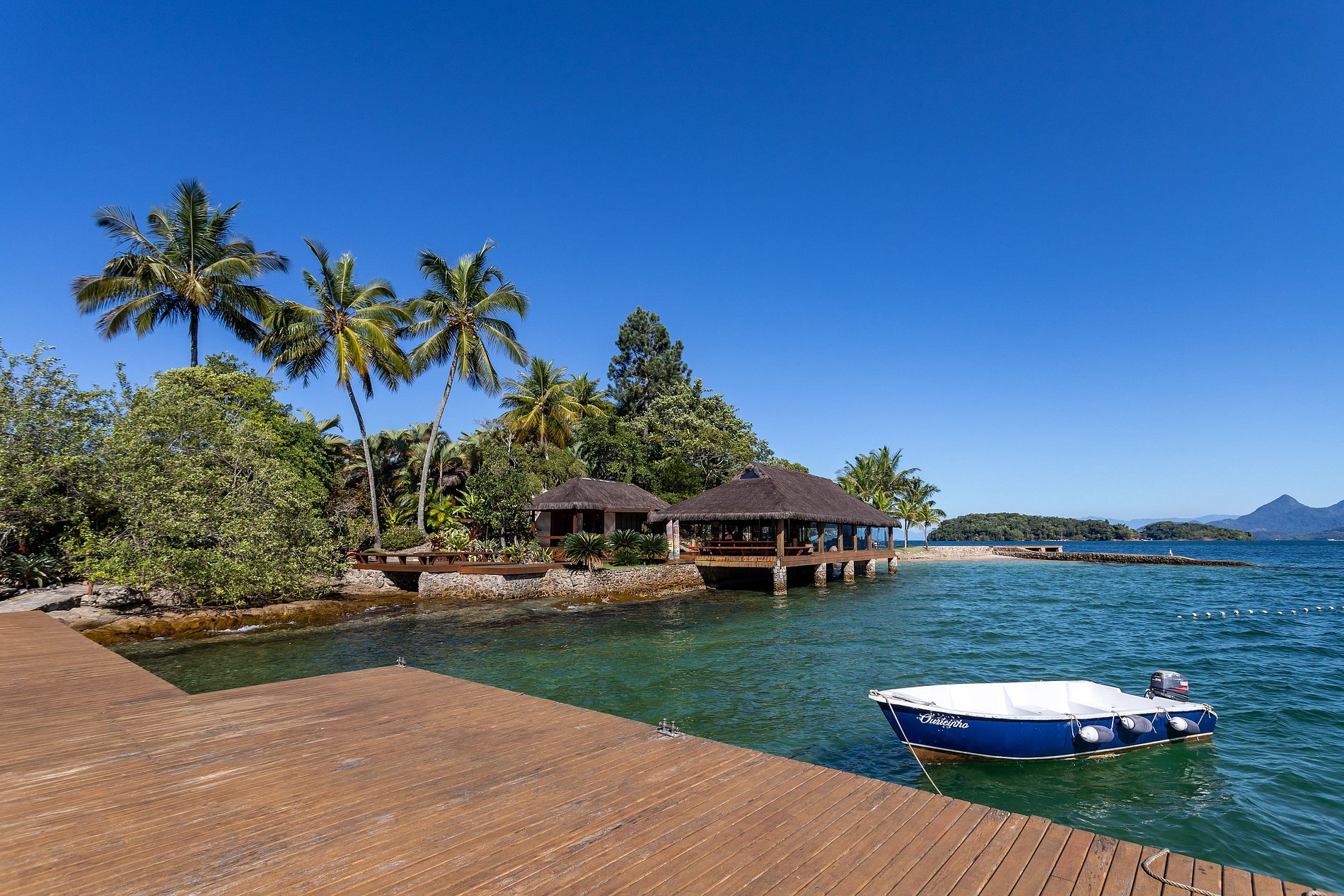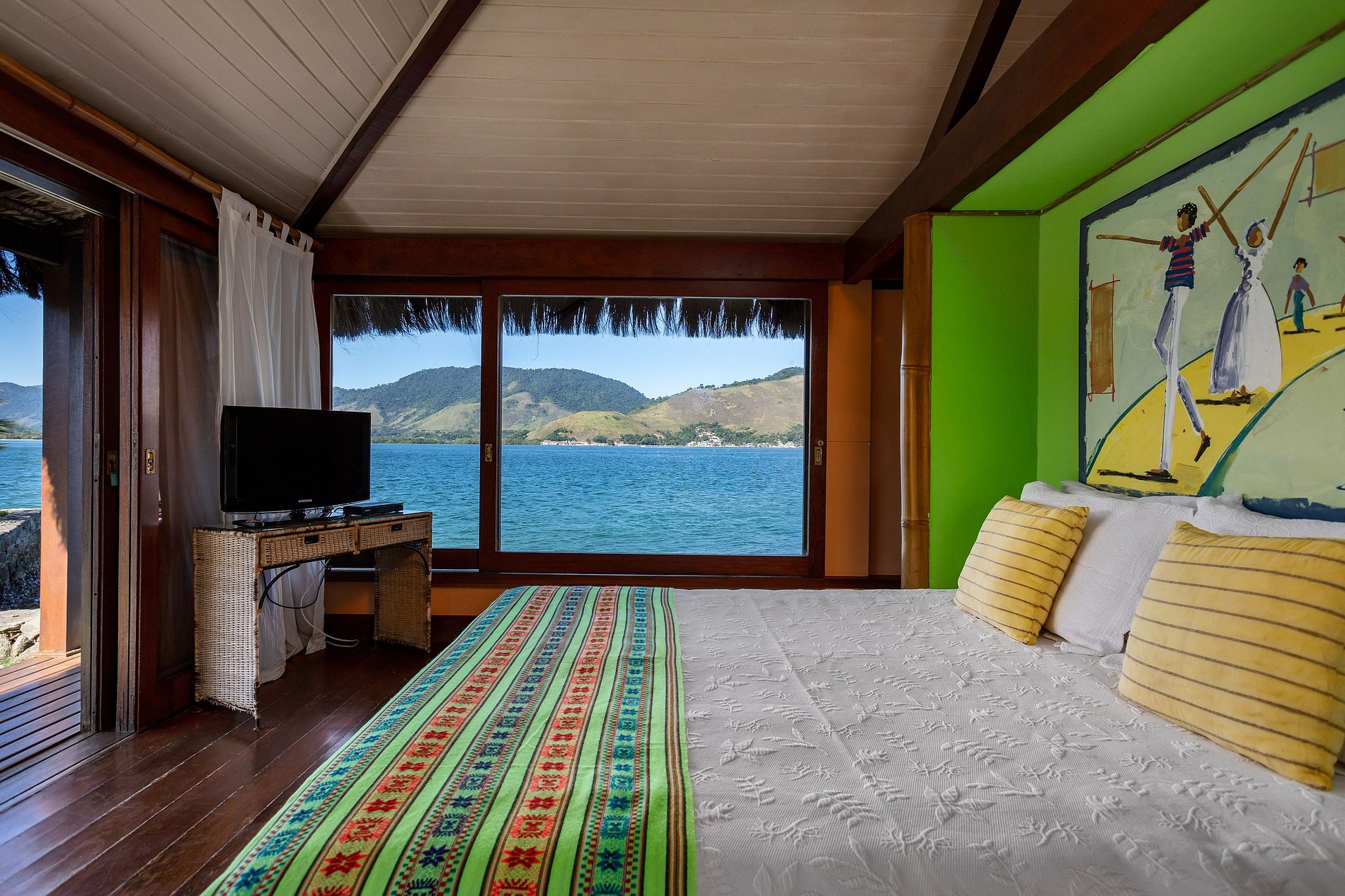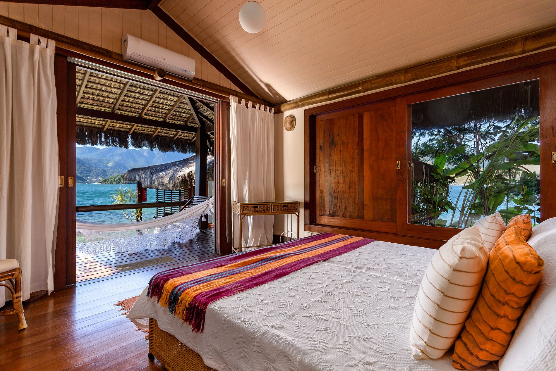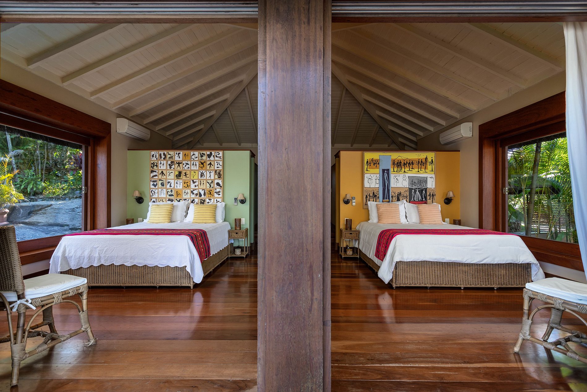 Ilha com 7 bangalôs, todos suítes, sendo 1 com 2 suítes conjugadas e outro com 2 suítes com mezanino e conjugadas.