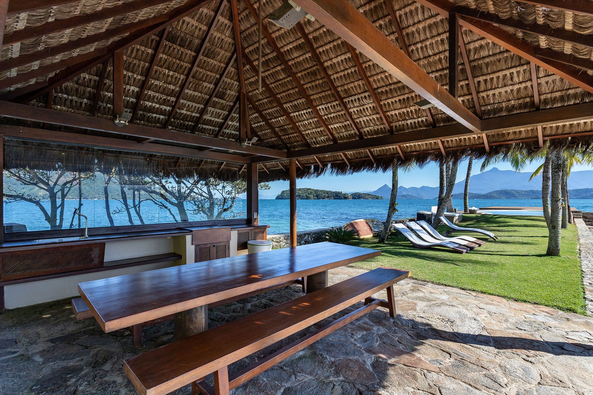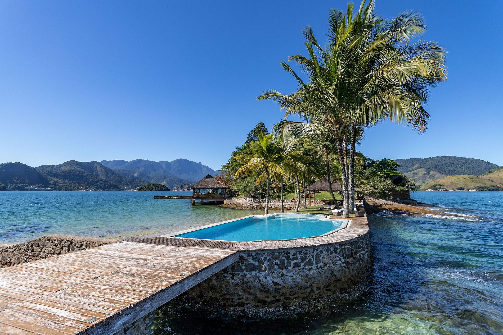 Piscina, praia particular, churrasqueira, ofurô e sala para meditação.