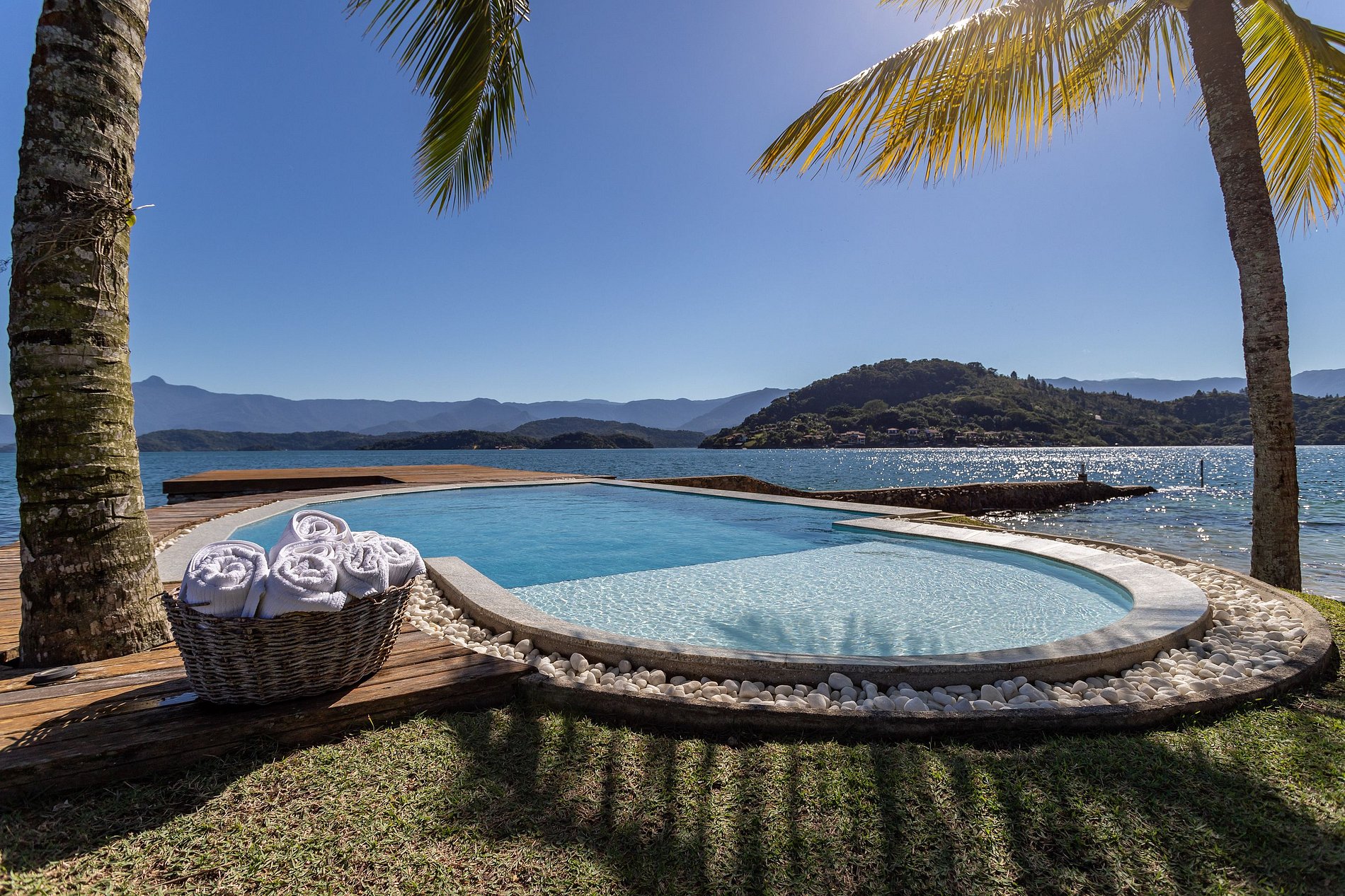 Piscina, praia particular, churrasqueira, ofurô e sala para meditação.