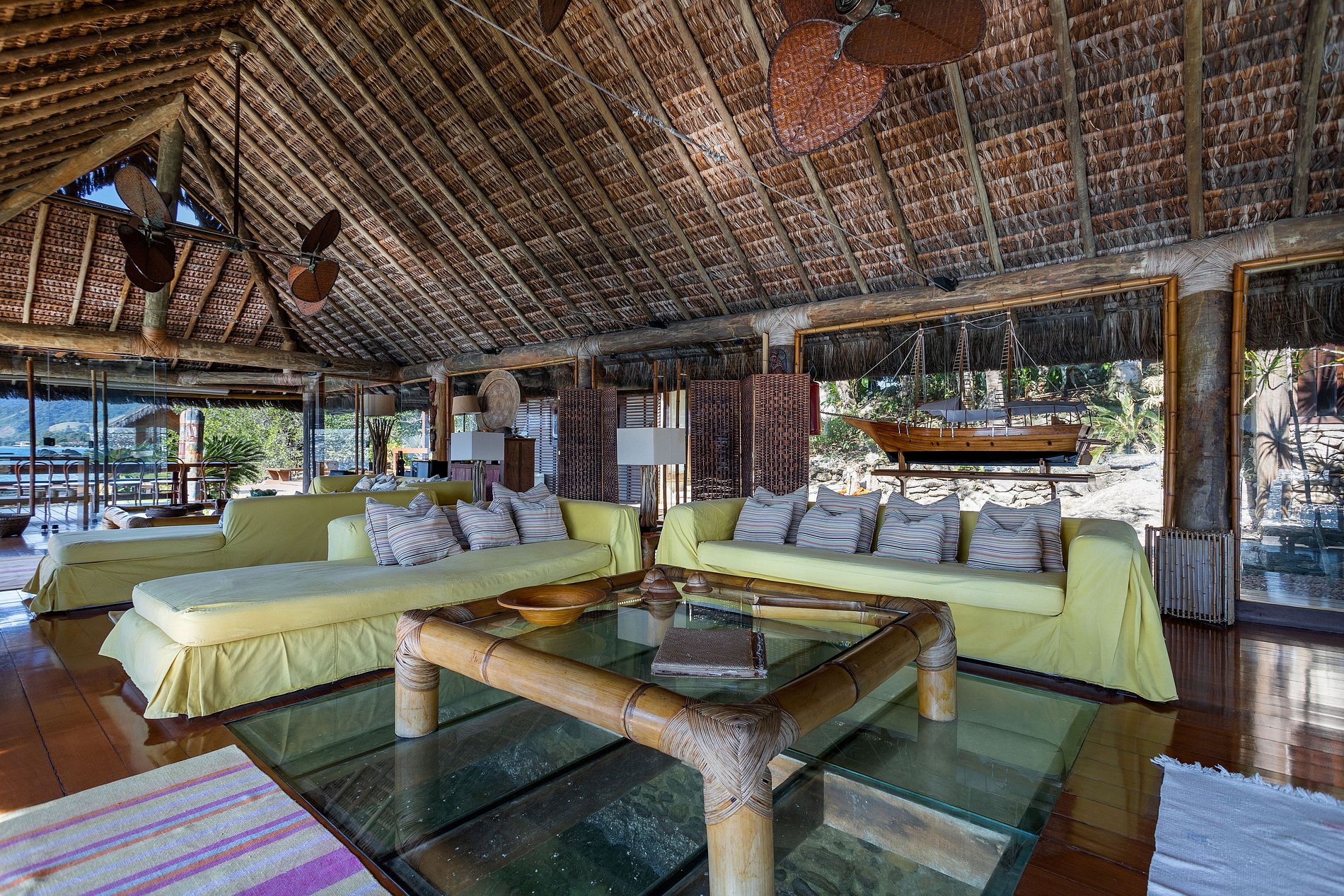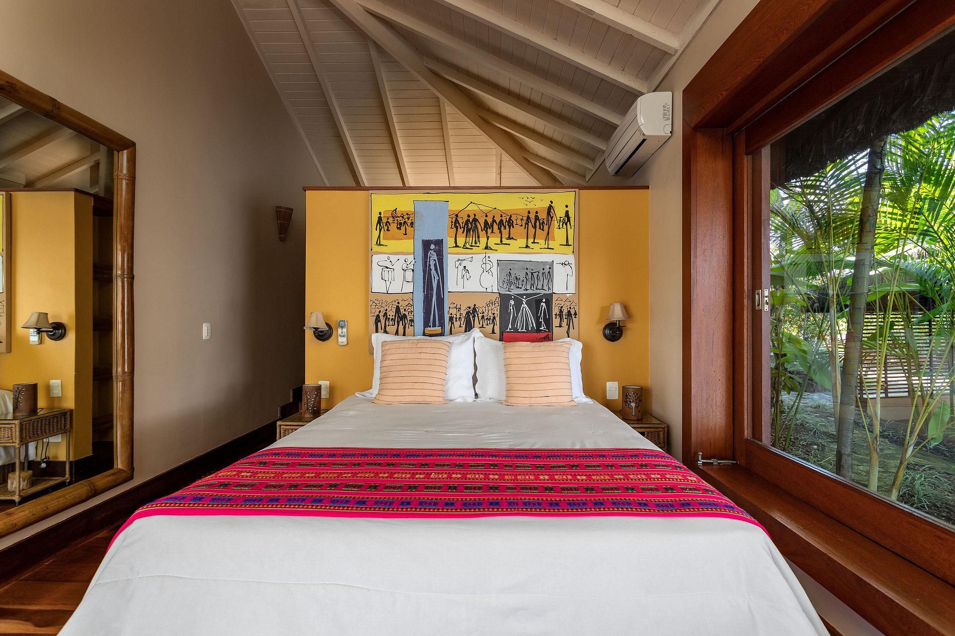 Ilha com 7 bangalôs, todos suítes, sendo 1 com 2 suítes conjugadas e outro com 2 suítes com mezanino e conjugadas.