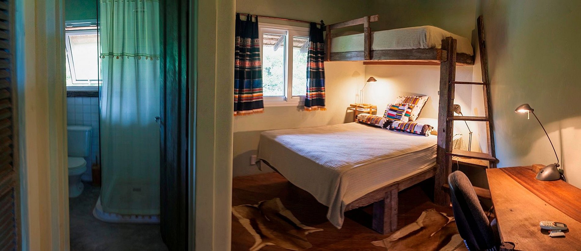 A Casa Maralago possui 2 Suites no andar superior (1 suite king e 1 suite queen c/1 beliche solteiro), cozinha, living, 2 varandas cobertas.