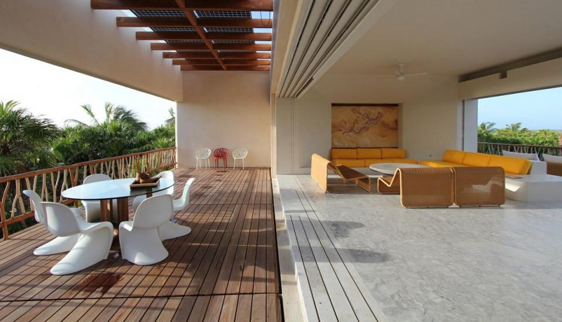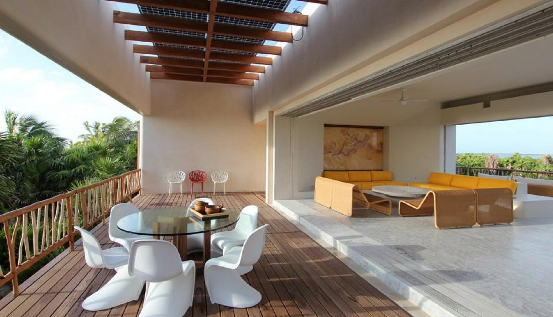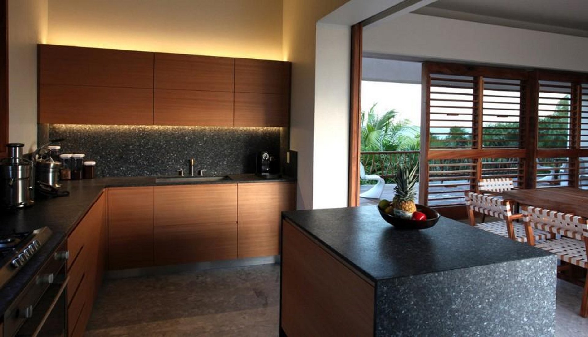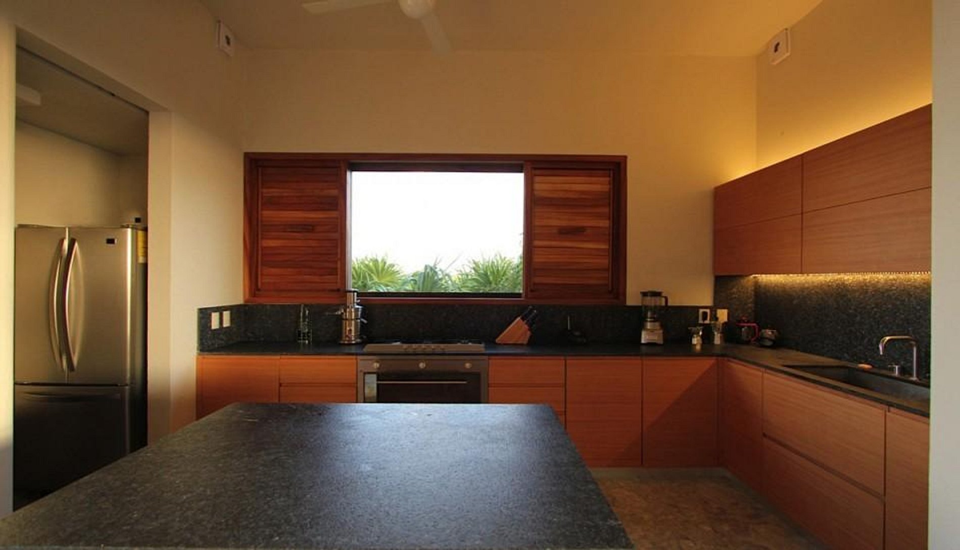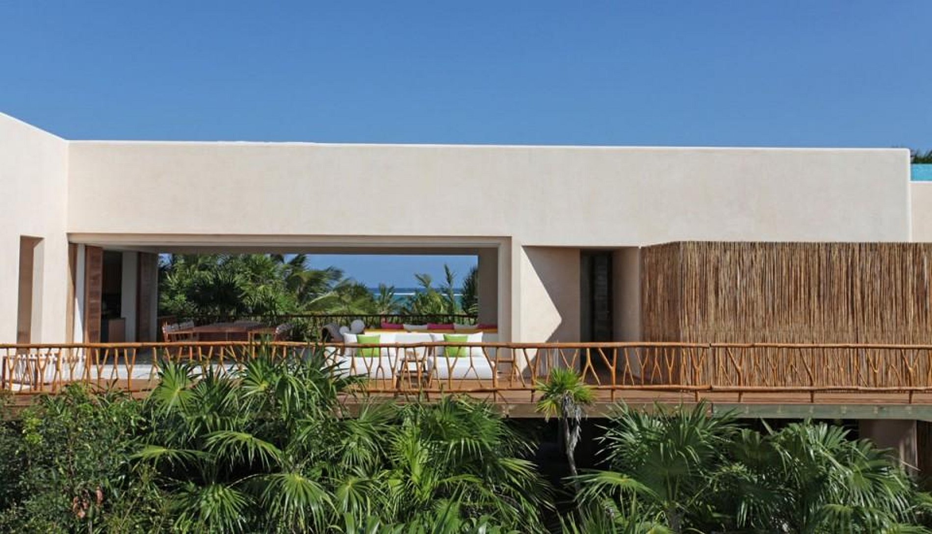 A mansão recentemente construída foi projetada por De Ytrube Arquitetos e é de estilo contemporâneo. Ela está situada em cinco hectares de vegetação exuberante e oferece uma impressionante praia de 300m e um adicional de 300 metros de orla da lagoa. A lagoa leva diretamente para os antigos canais maias.