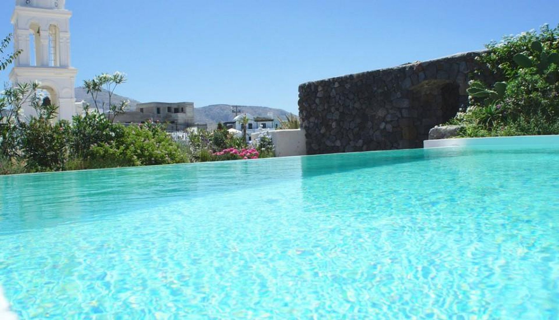O piso térreo oferece uma convidativa piscina de borda infinita e deck de rocha vulcânica onde os hóspedes podem desfrutar das vistas de Megalochori e do Mar Egeu à frente. À noite, a iluminação acentua lindamente este espaço ao ar livre para os hóspedes aproveitarem essa área de estar ao ar livre. Também localizado no piso térreo há uma compacta, ainda totalmente equipada, cozinha, bem como o quarto principal. Este quarto principal com teto de abóbada tem decoração rústica para proporcionar uma atmosfera pacífica e confortável, e desfruta de uma banheira convidativa no banheiro privado. O segundo nível também fornece duas suítes.