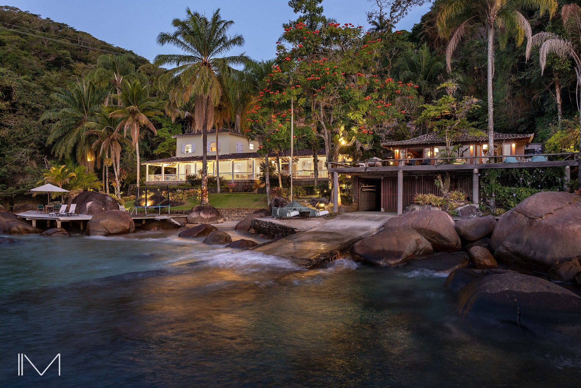 Além da praia exclusiva, oferece sala de estar, sala de jantar, varanda gourmet com churrasqueira, media room com lareira, academia e treehouse.